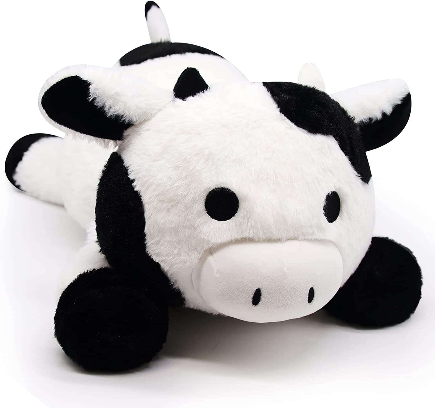 - 【Best Gift】: Super cute plush cow doll for all ages. Excellent gift for Christmas, Halloween, birthday. And you can give as a gift to kids, family, friends, believe the Weighted cow plush pillow will bring them good luck.