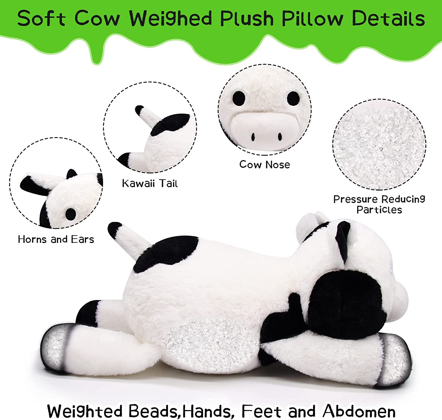 - 【Weighted Cow Plush】: To make the weighted cow plush animal used for anxiety more realistic and full, weight was added to the front and hind legs of the cow plush animal pillow in addition to the weight on the belly.