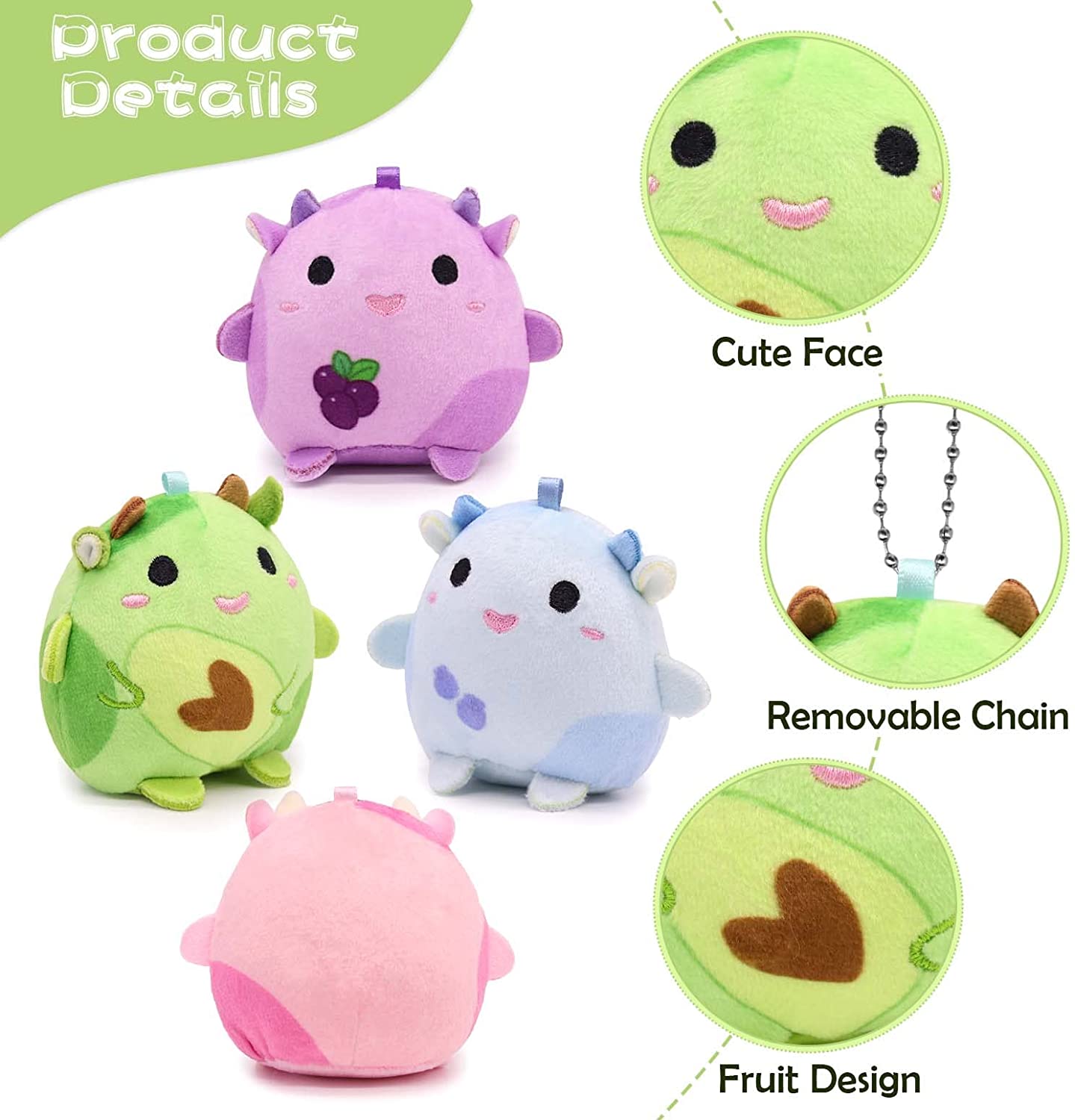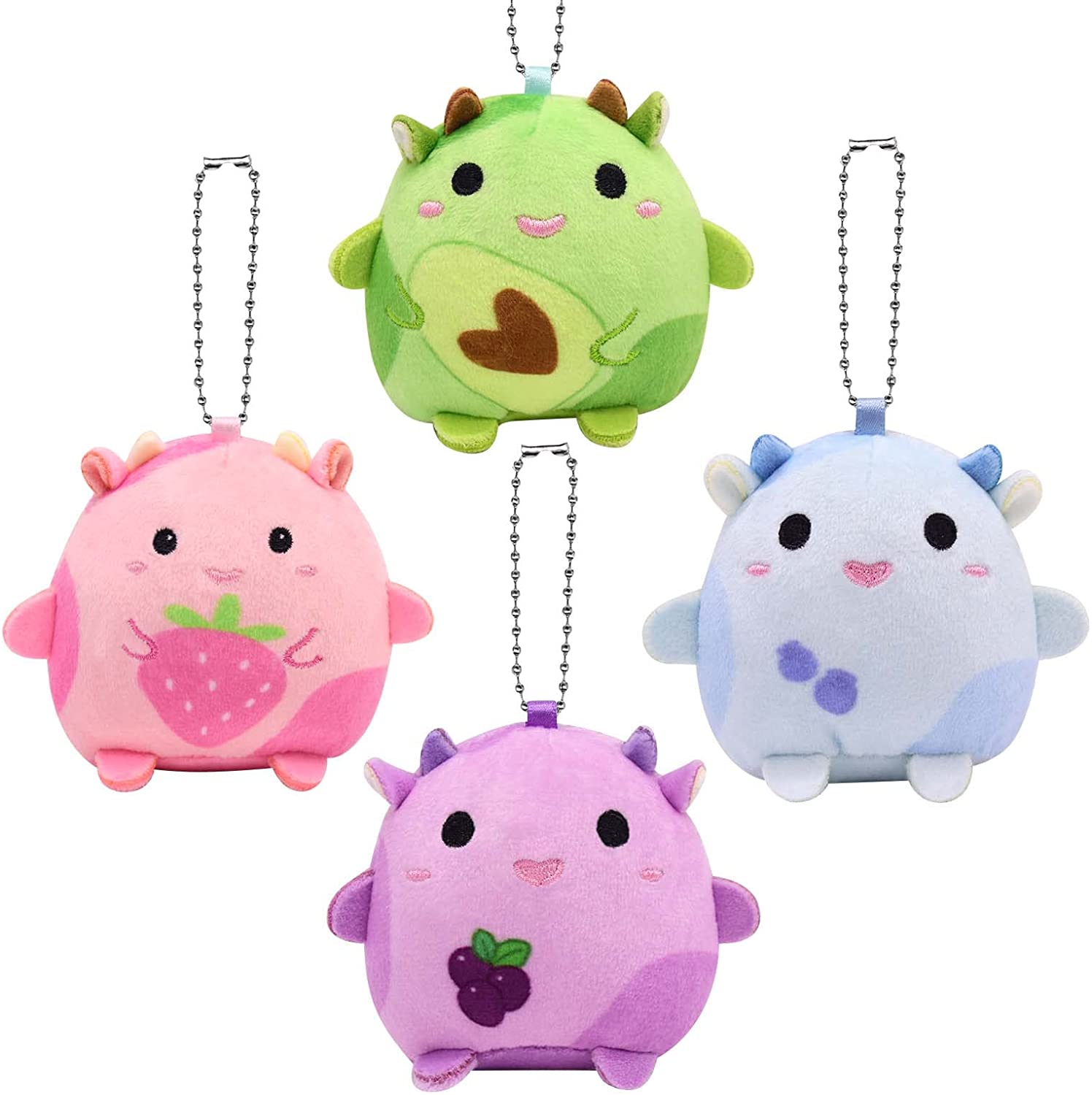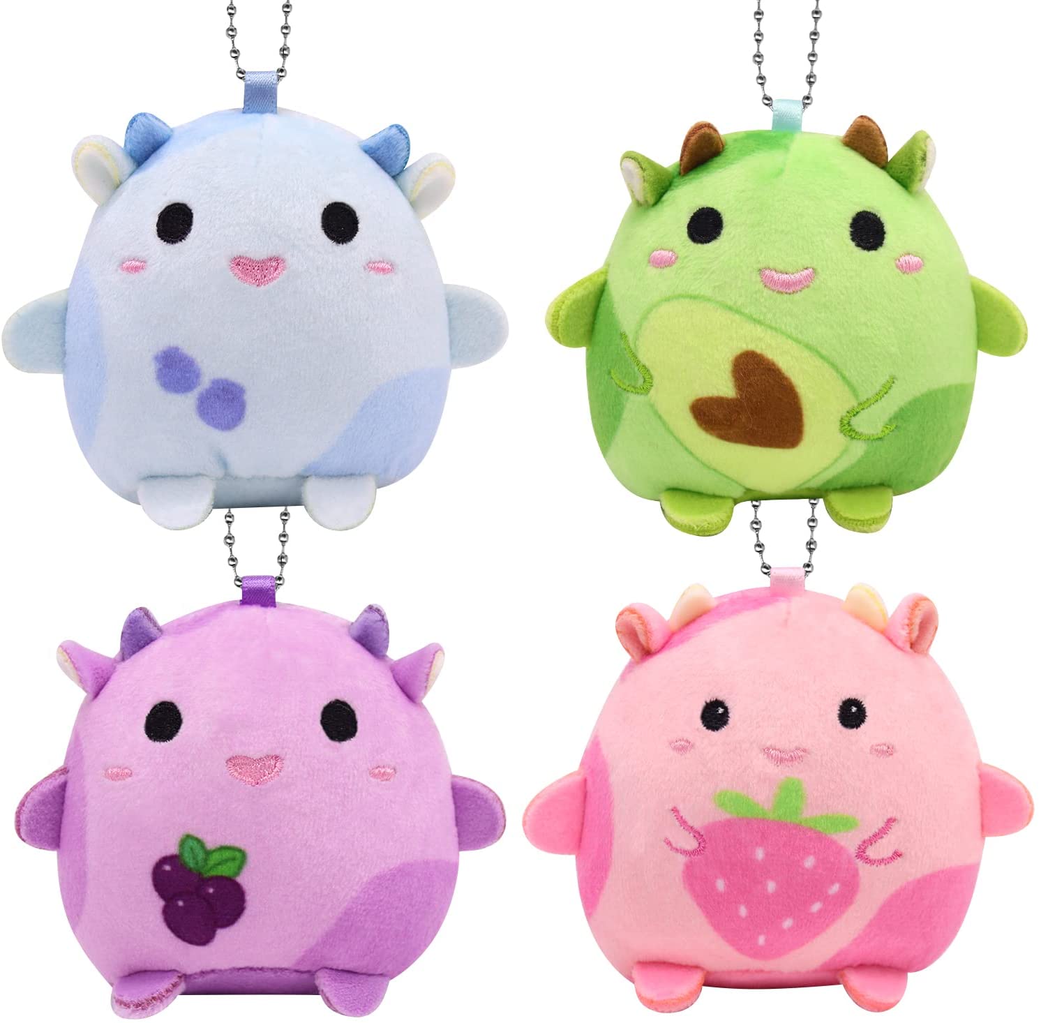 4Pcs Cute Cow Plush Cow Stuffed Animal Toys, Kawaii Strawberry Cow Plush Blueberry Cow Plush Avocado Cow Grape Cow Plushie Set, Soft Plush Keychains Stuffed Cow Toy for Kids Christmas Birthday Gifts