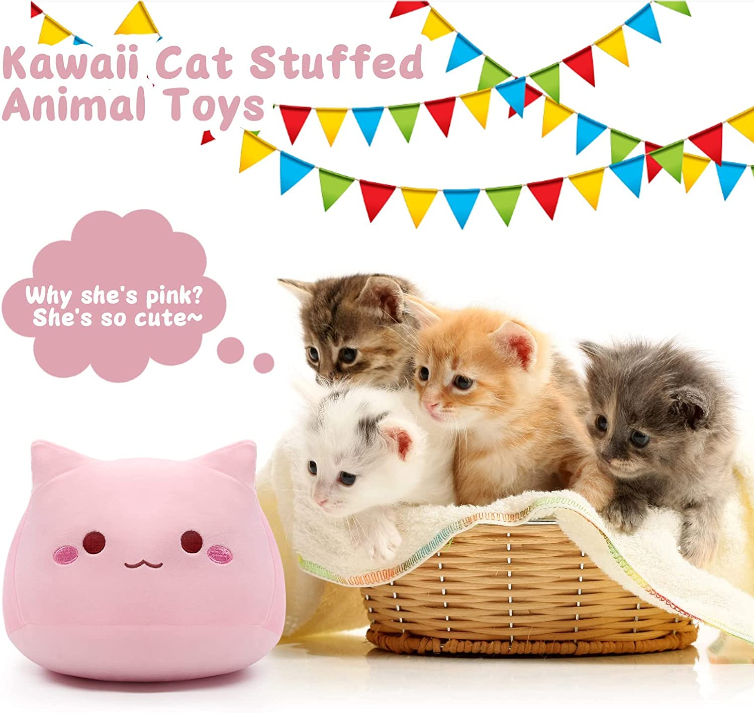 8" Cat Plush Pink Cat Pillow,Soft Plush Doll Cat Plushie Cat Pillow,Stuffed Animal Soft Plush Pillow Baby Plush Toys Cat Shape Design Sofa Pillow Decoration Doll