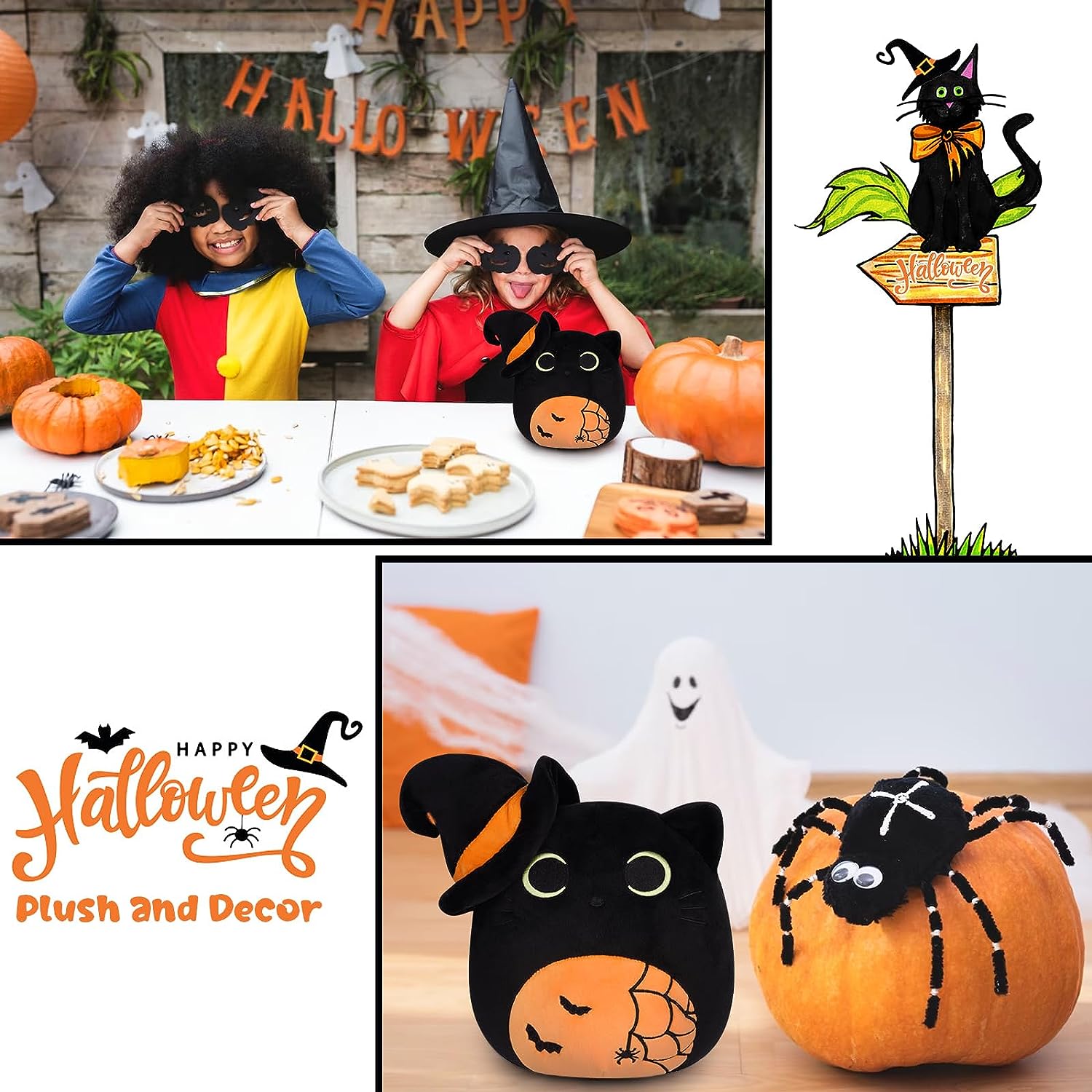 - Elegante: la muñeca de peluche de gato negro de Halloween está hecha de felpa corta de alta calidad y llena de algodón de polipropileno, sin olor, sin irritación, no daña la piel delicada, adecuada para ti, tu bebé, tus mascotas. Nadie rechazará un lindo y práctico juguete de gato negro