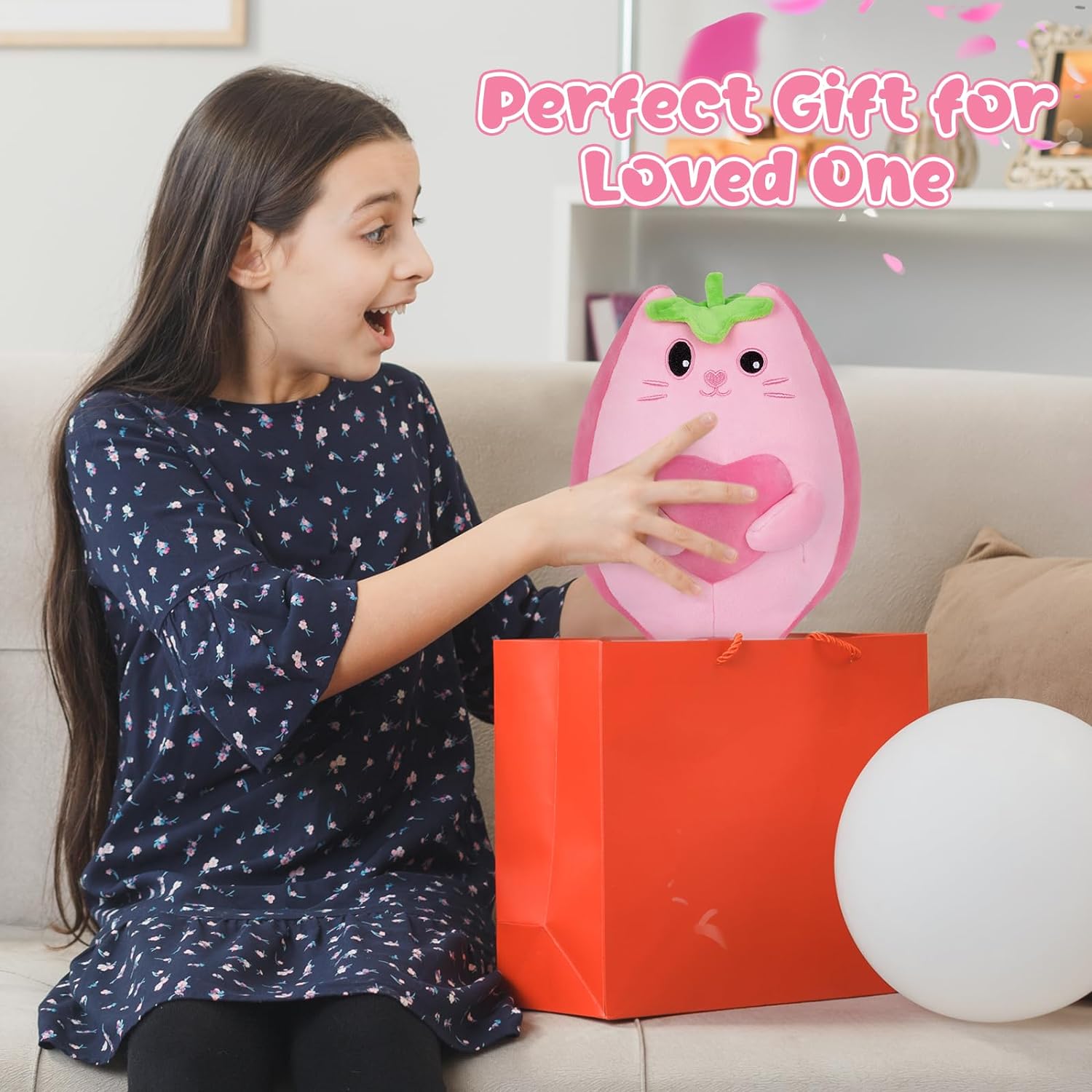 Almohada de peluche de fresa de gato de fresa, lindo juguete de peluche de gato de fresa Kawaii, muñeca de felpa de gato de fresa, suave y lindo regalo para niños y niñas