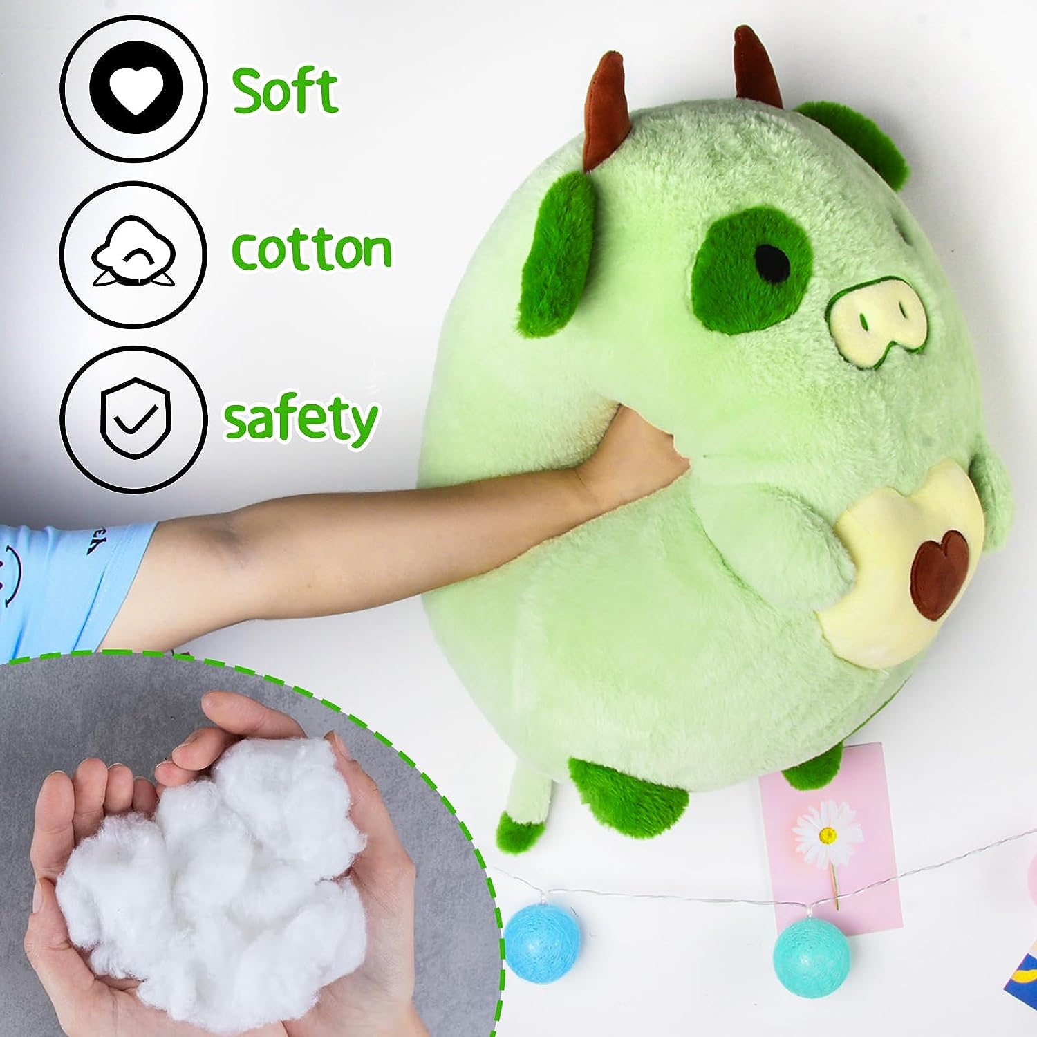 Almohada gigante de peluche de aguacate verde linda vaca