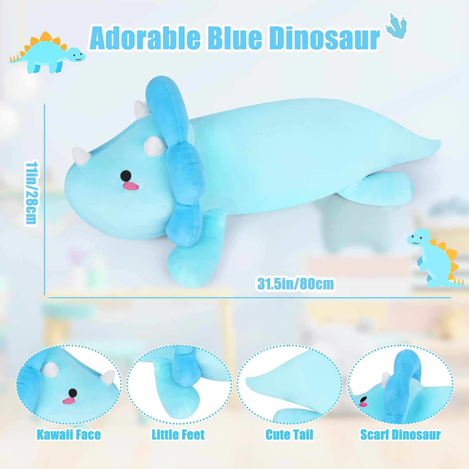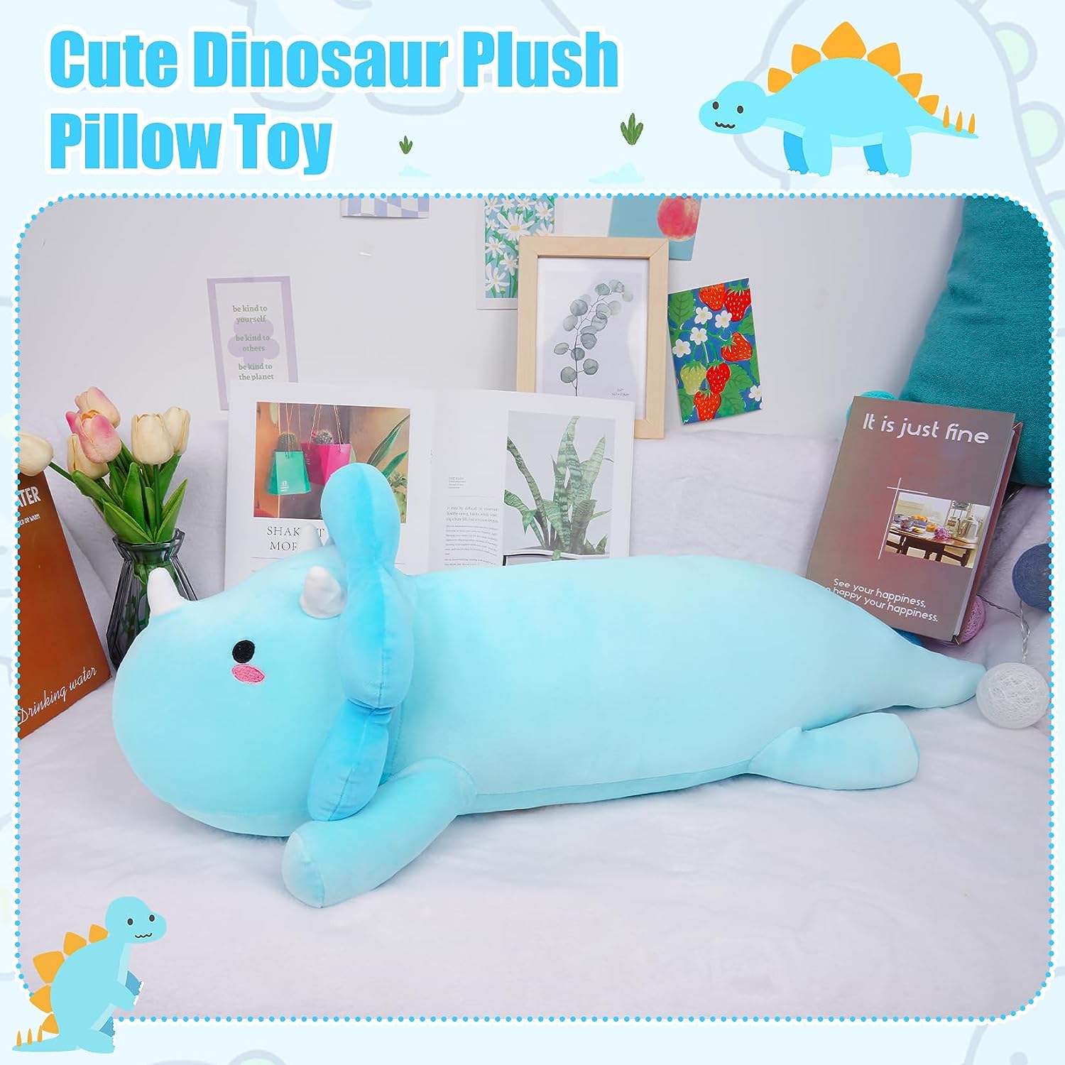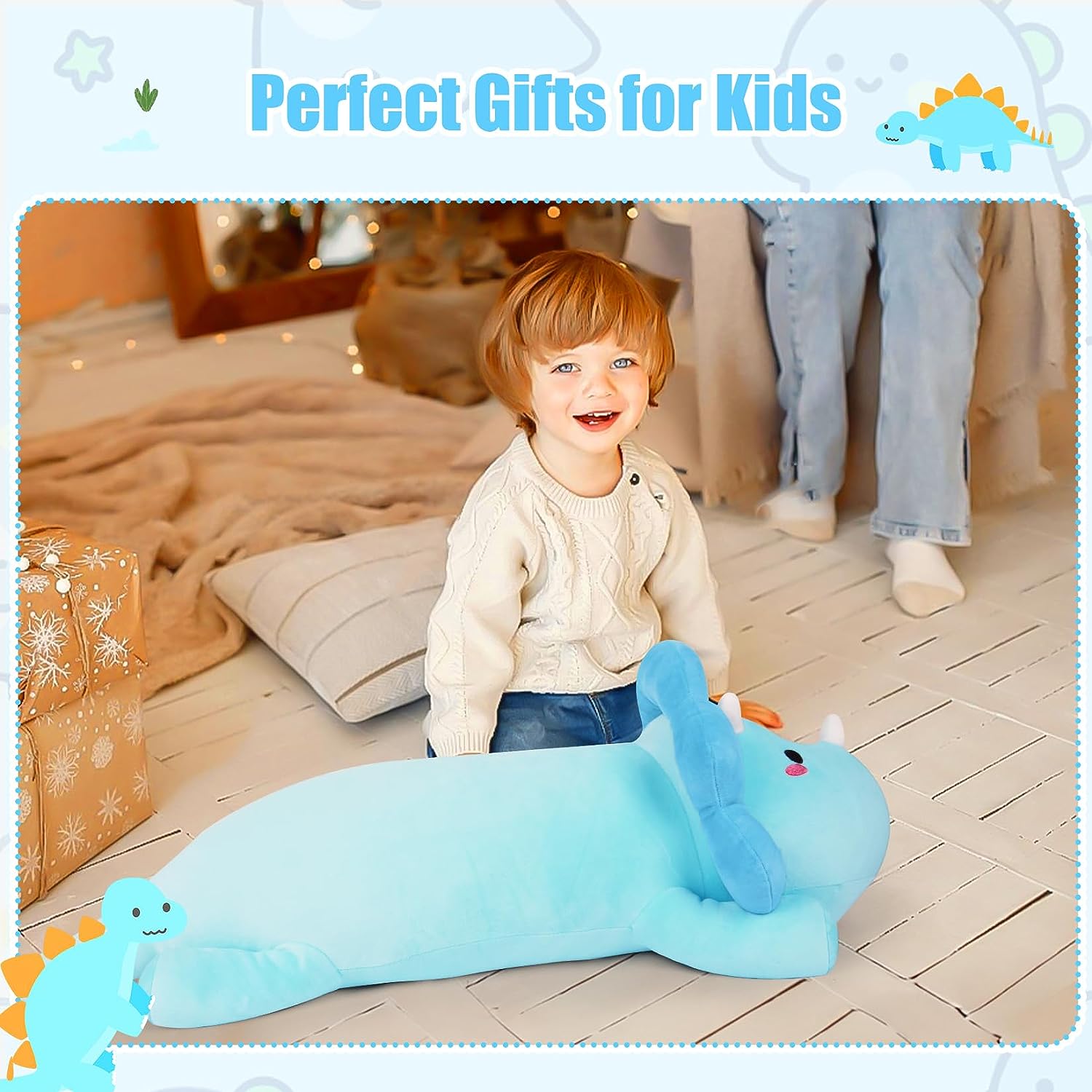 Almohada larga de felpa de dinosaurio, linda almohada de felpa de dinosaurio azul, juguete de peluche de dinosaurio kawaii Marca: Leokawin