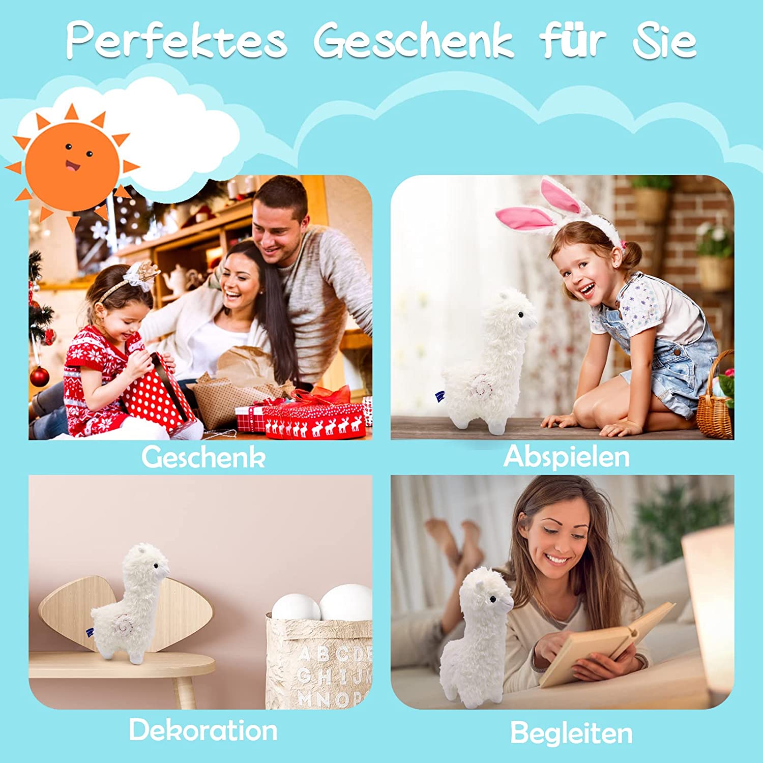 - Versatile use: Kawaii alpaca plush toy, soft cushion and back cushion, plush toy, sleeping plush toy for children as well as a wonderful decoration in the living room or bedroom of girls, etc.