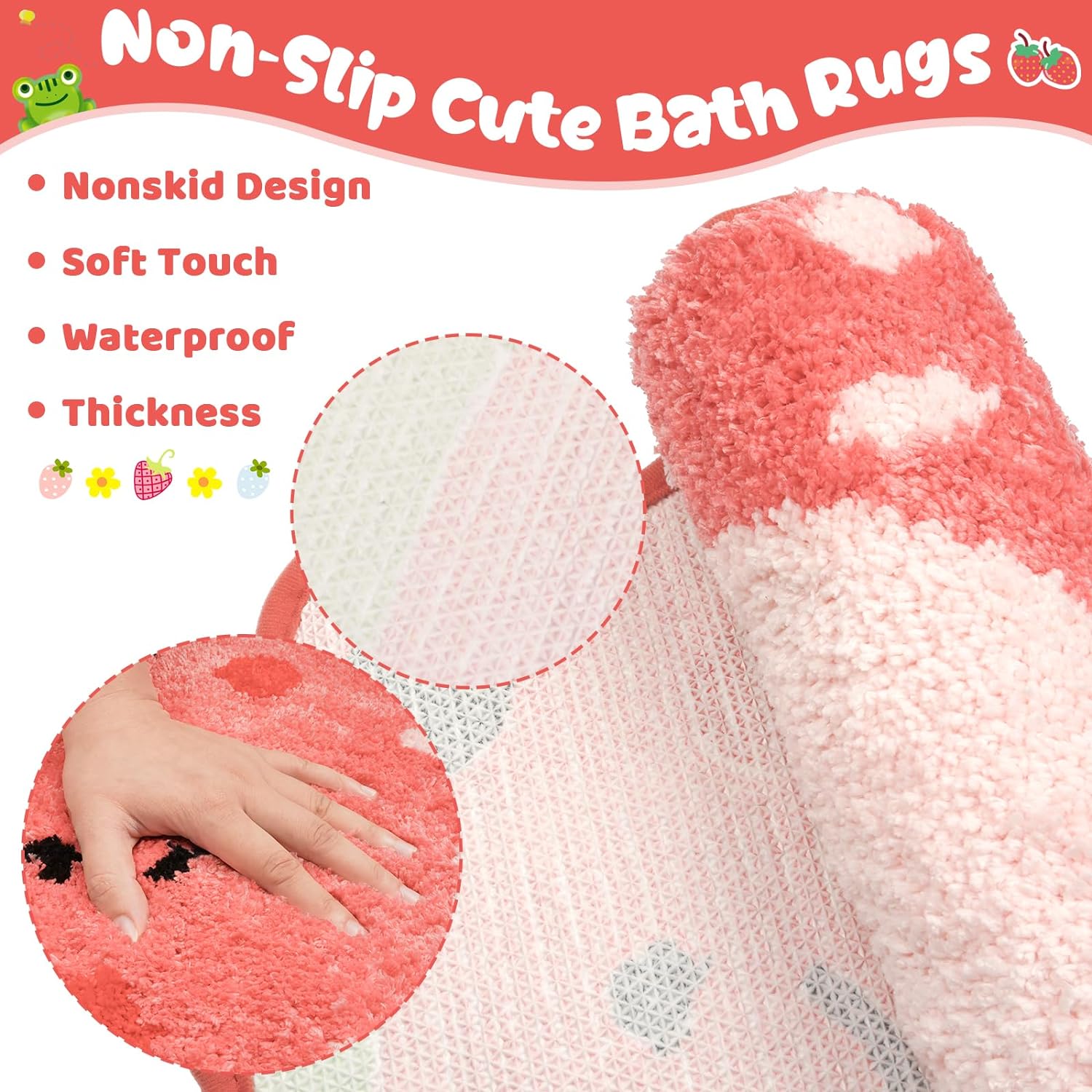 - Non-slip Absorbent Bath Mat :Our 20x24.5inch Strawberry Frog bath mat is a short plush fabric that is soft and comfortable, helping to keep you safe by preventing you from slipping when entering or going outside.