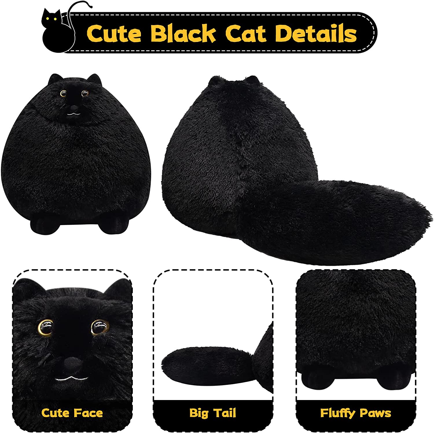 - blac cat plush toy, black stuffed animal, cute cat plush pillow, soft plush cat plushies doll