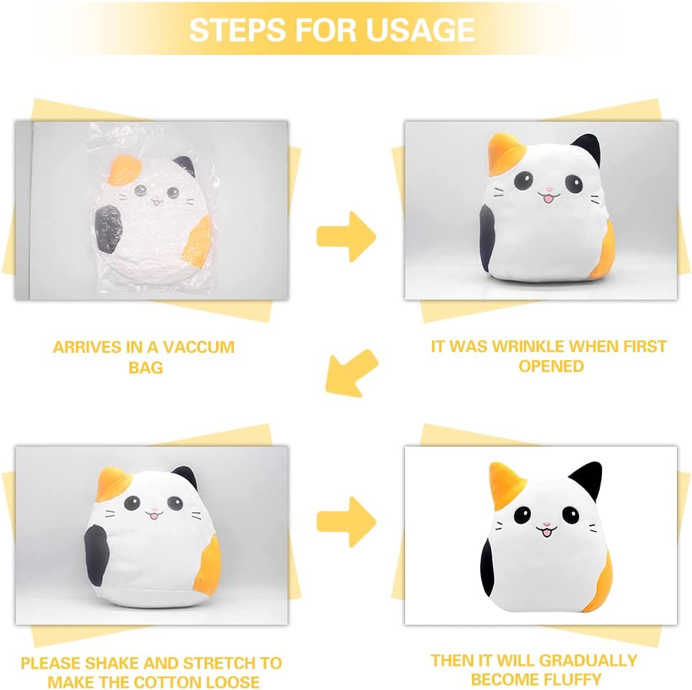 EASY CLEAN - This cat plush can be wiped off superficially with a sponge and a mild soap to remove stains,Washable and easy to clean.