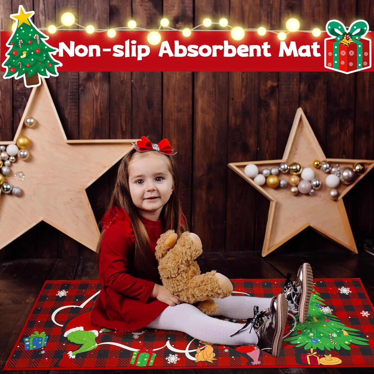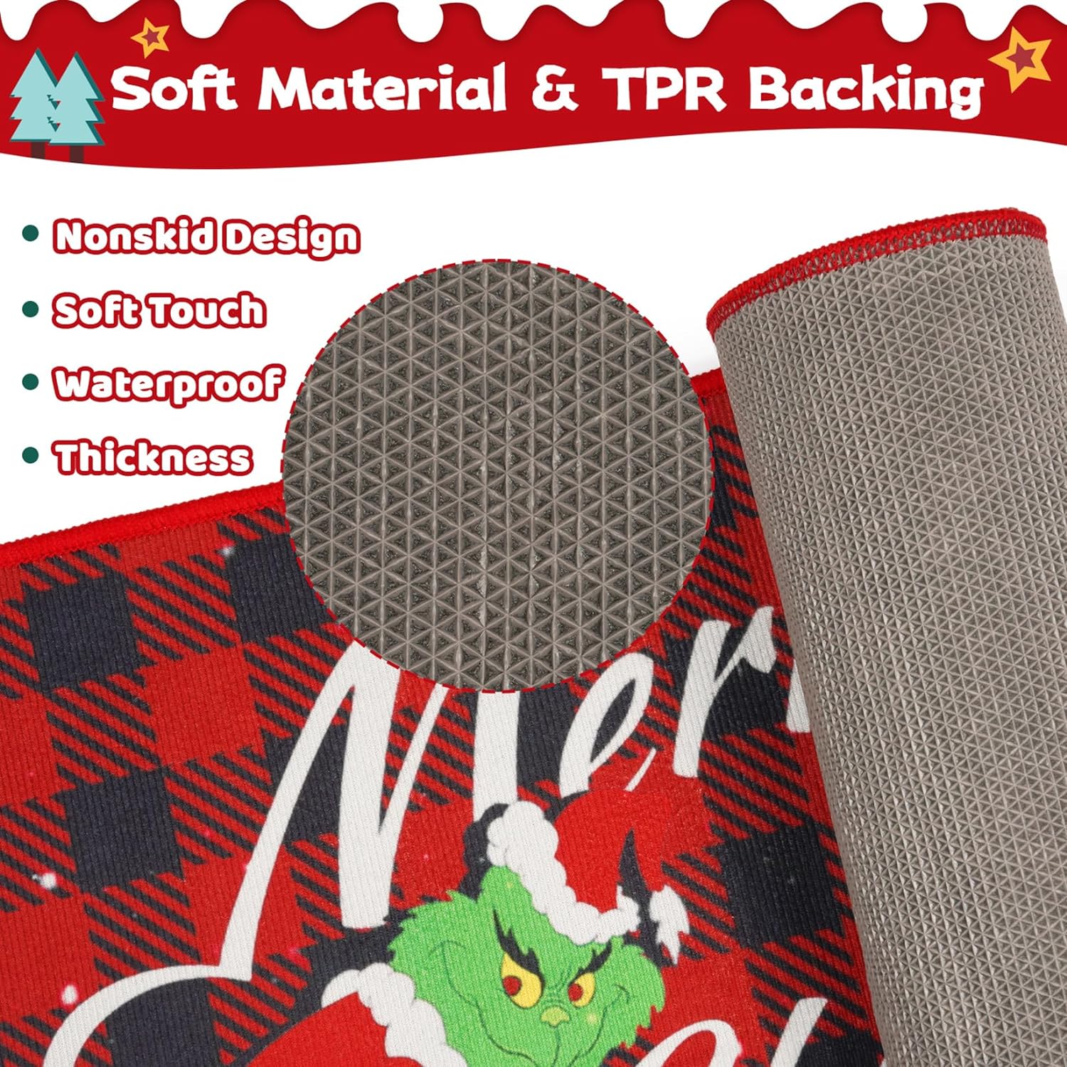 - Funny Christmas Design: Pattern of this kitchen doormat is very Christmas atmosphere, green monster, Christmas tree, kids holding gifts, nothing is more suitable for Christmas than this kitchen mat!