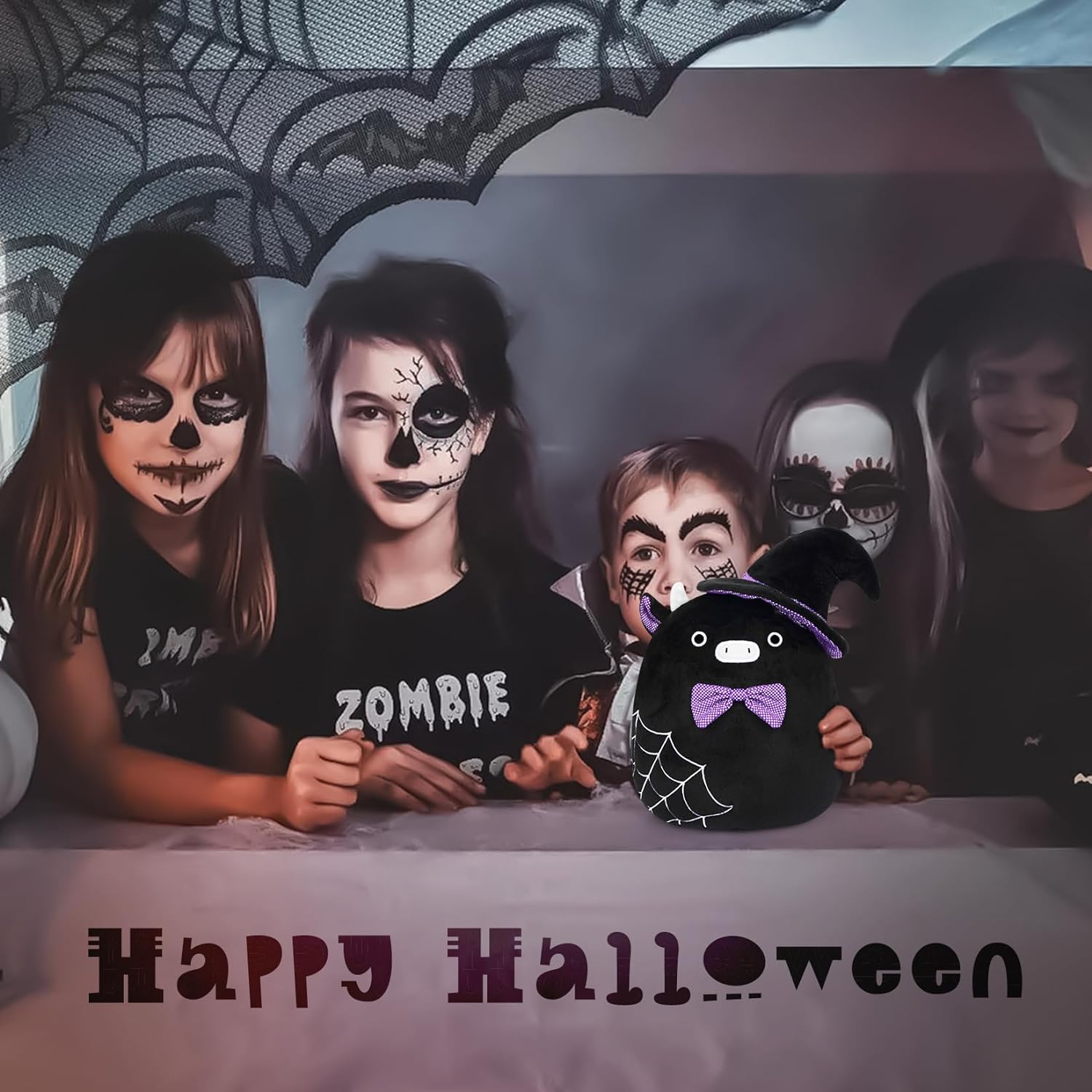 - Cute Design - 10in Cute Halloween Scary Plush, She is a black witch cow with a black witch hat on her head, a purple bow tie, and a spider web design on her body. a very original design. It is full of the festive atmosphere of Halloween.