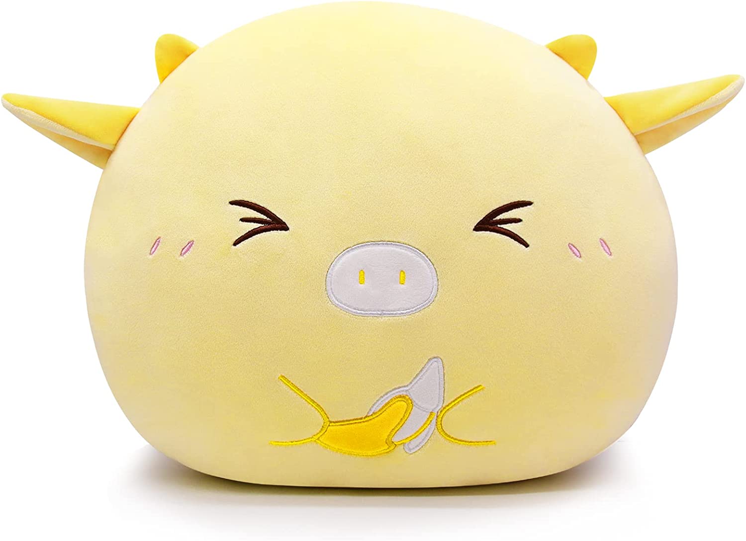 - 【Creative & Interesting Banana Cow】: This yellow stuffed plush cow animal pillow is a combination of banana and cow, very interesting and cute. Kawaii expression design can eliminate negative emotions and make people happy.