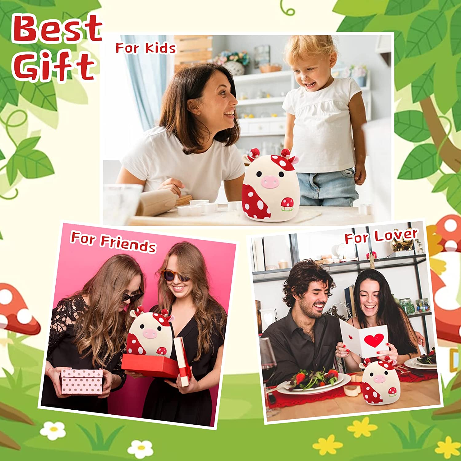Cow Plush Pillow Cow Stuffed Animals, Cute Stuffed Animal Cow Plushie, Soft Mushroom Plush Cow Pillow Kawaii Stuffed Cow Plush Toy for Kids Girls Boys Birthday Valentines Day