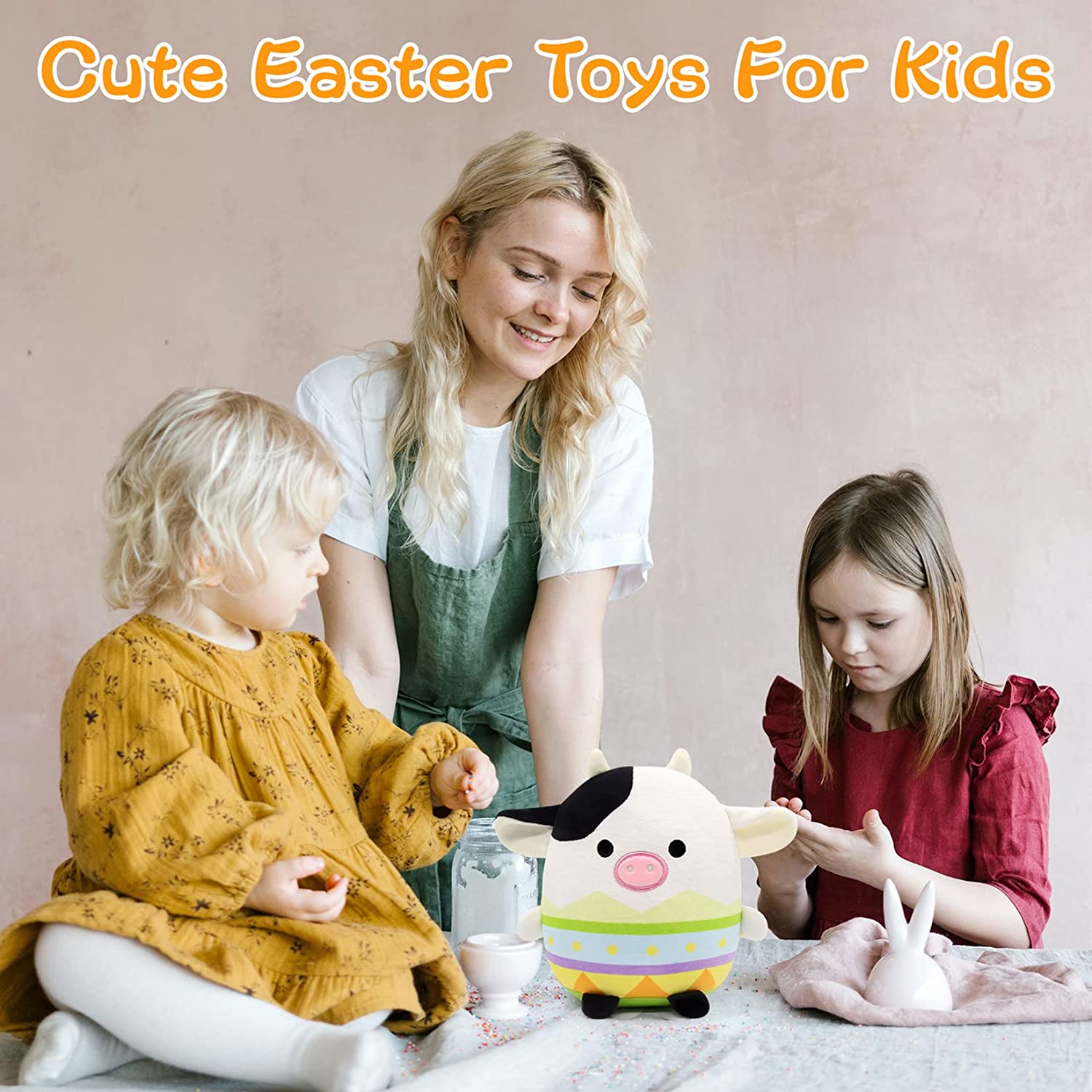 【 Cute Cow Plush toy design 】 This cow plush toy is carefully designed. It has long ears and wears egg clothes. It is an egg cow! It is very lovely and full of Easter atmosphere.