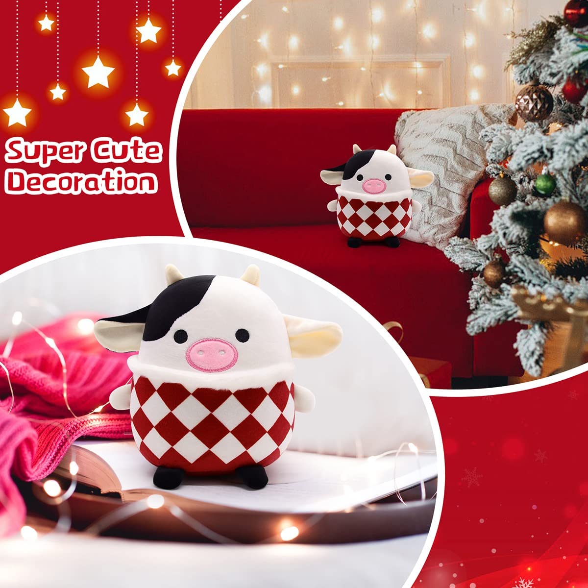 - Multifunctional Doll: Kawaii Cow stuffed animal pillow can not only be given as gifts, but also as home decorations. It can be placed on sofa and bed, and can also be placed on houses or cars as decorations. This cow plush has a pair of long ears and is dressed in a festive red and white checkered outfit, making it very festive.
