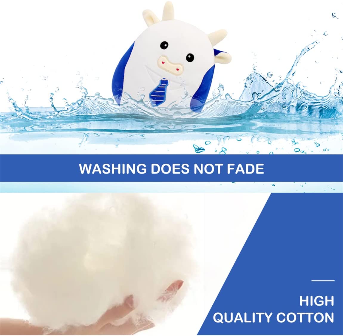 9 Inch Cat Plush:This cute cow plush size is suitable for children, children can easily grab and hug. Also, these soft stuffed cow doll can be used as a lumbar back cushion pillow when toddlers sit or play alone. Made of soft cotton fabric.This kawaii cow plushie has good elasticity allows, not deform when pressed and hugged.