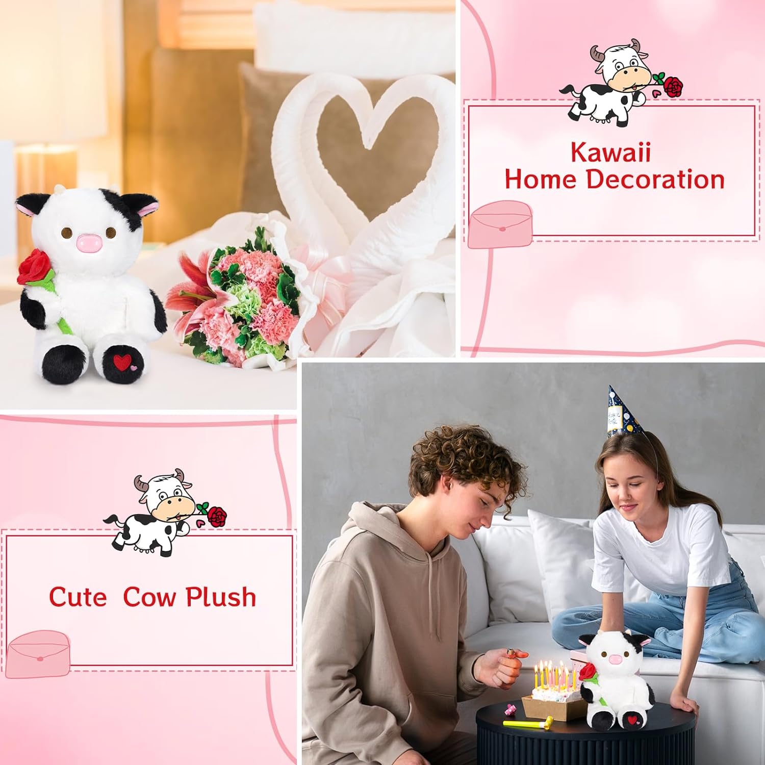- Valentine's Day Gift: This adorable cow plush hold a red rose in his hand. It's a love rose to your lover. There's no one who doesn't love a cute and soft cow plush doll. This soft and cuddly cow stuffed animal toy is the perfect Valentine's Day gift for kids and family.