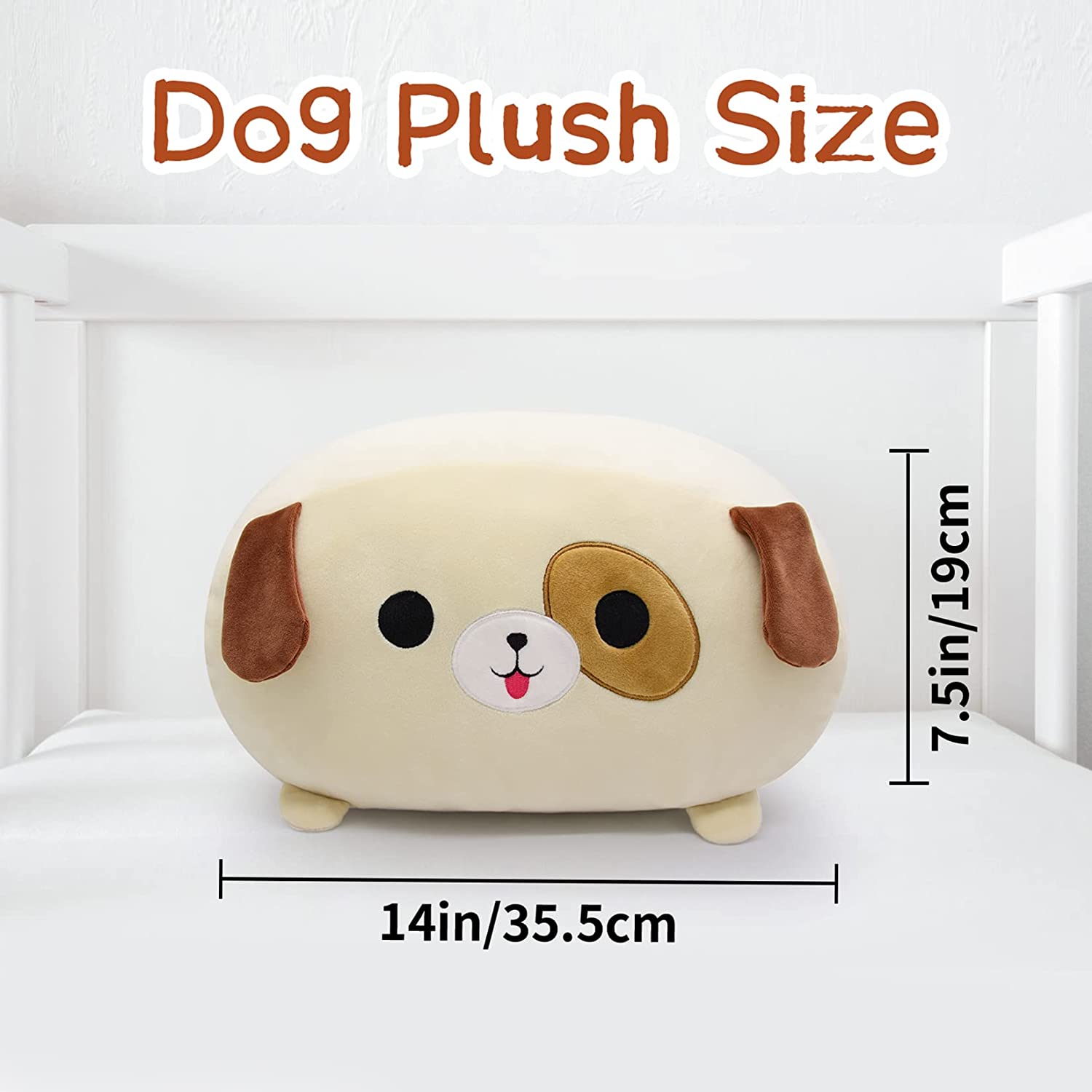 Cute Dog Plush Pillow Toy, 14inch Soft Puppy Pillow Kawaii Home Decoration, Sofa Pillow Dog Stuffed Animals Pillow for Kids Birthday Gifts (Dog Khaki)