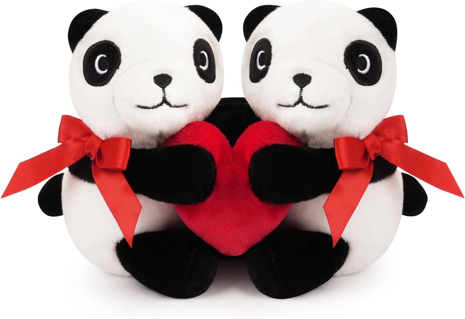 Cute Panda Stuffed Animals with Red Heart, Couple of Panda Plush Toy, Valentines Day Decoration Plush Gift for Kids