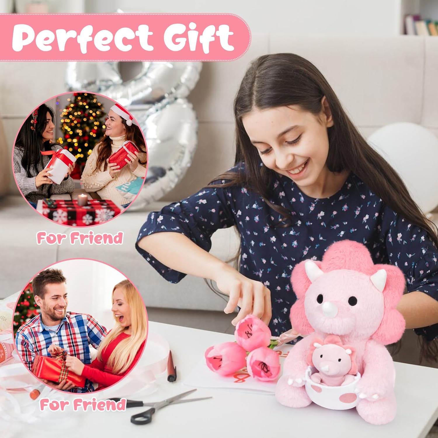 - 【Unique Triceratops Plush Design】The pink Triceratops stuffed animal comes with a baby dinosaur plush. The companion is conducive to stimulating your child's rich imagination and creativity.