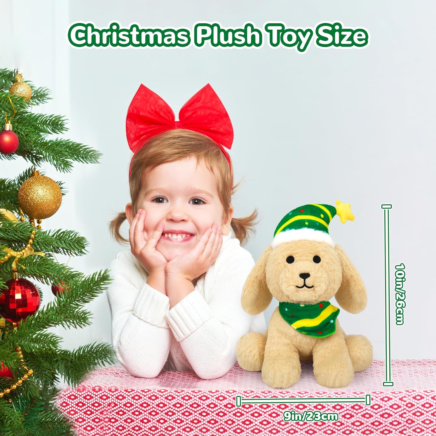 Dog Plush Christmas Dog Stuffed Animal Toy, Soft Dog Plushie Pillow, Cute Green Hat Dog Stuffed Doll Toy for Kids Boys Girls Kawaii Christmas Decoration (Green Hat)