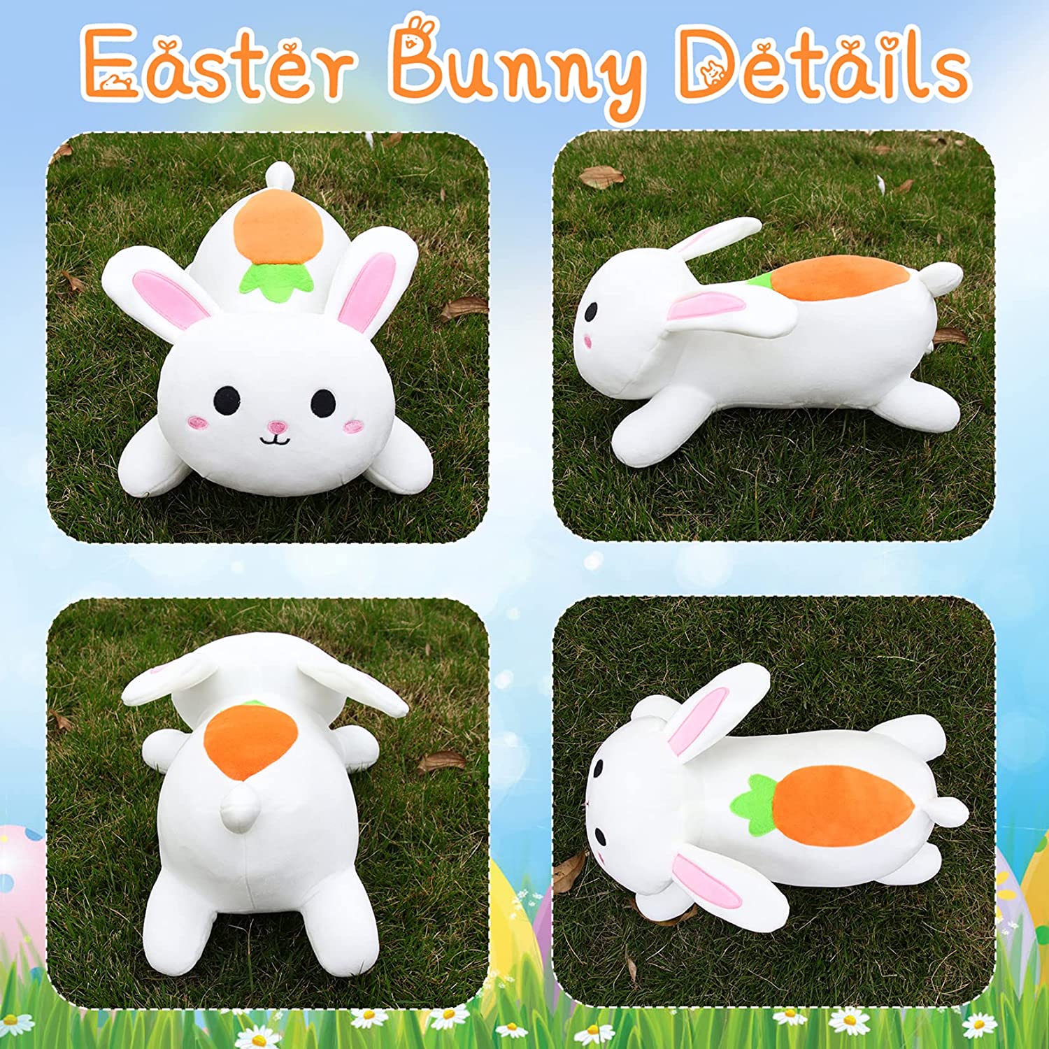 【Soft & Fluffy】: This cute white Easter bunny plush pillow is made of super soft short plush fabric and PP cotton filling. Each cute bunny plush toy has undergone multiple quality tests.
