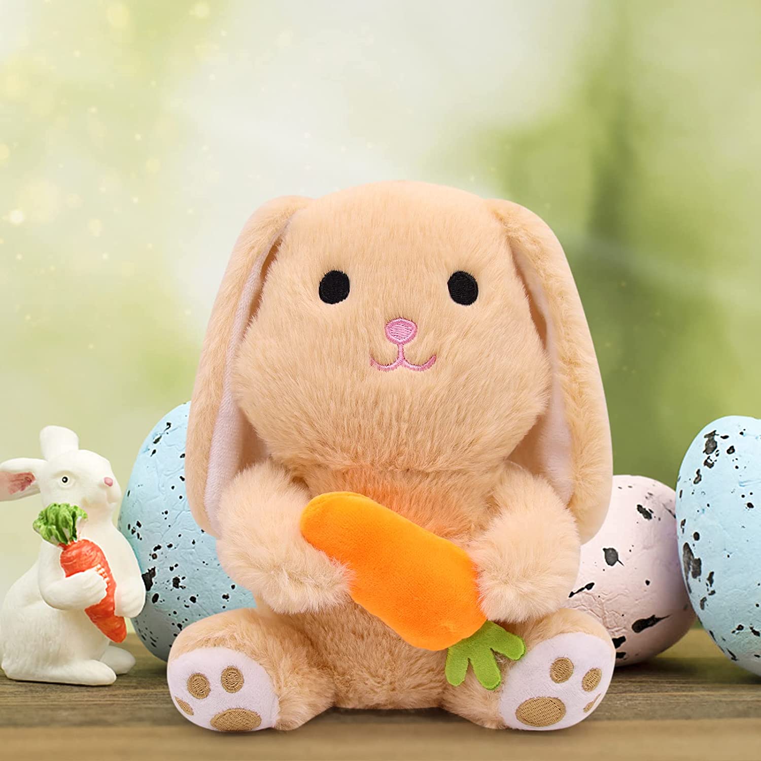 Easter bunny plush rabbie, rabbit plush toys for gift Easter, rabbit plush doll, brown rabbit plush toy with carrots, Valentine's Day Easter decoration gifts for children