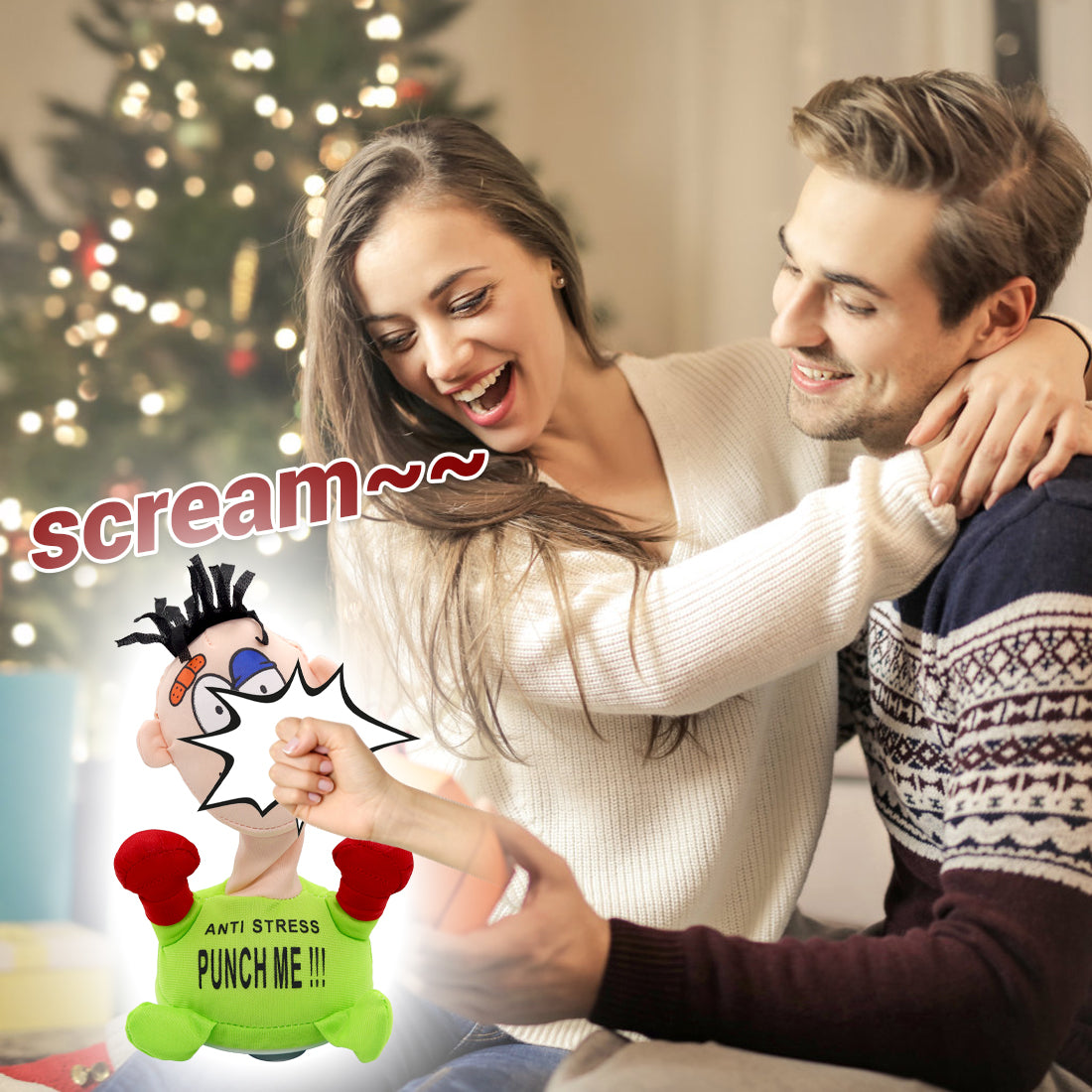 Electric Plush Anti Stress Doll, Desktop Stress Relief for Adults Interactive Toy, Desk Punching Bag Decompress Hit Toy Screaming Doll, Funny Toys for Adults and Children to Vent Stress (Green)