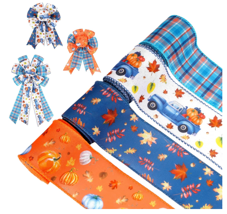 - High Quality Ribbon:Fall Thanksgiving themed wired ribbon is made of durable polyester fiber, not easy to lose color, wired metal wire flexible line better cuttable but not easy to break during use,not easy to wear and tear,make sure your Thanksgiving decorations sparkle all season long. Suitable for indoor/outdoor use
