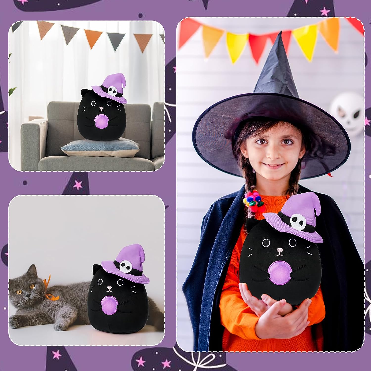 - 🔮Halloween Cat Plush:The black cat plush wears a purple hat and holds a Crystal ball in its arms.Kawaii cat plushie is full of mystery and is very suitable for Halloween to create a festive atmosphere.It is a perfect Halloween decoration and gift