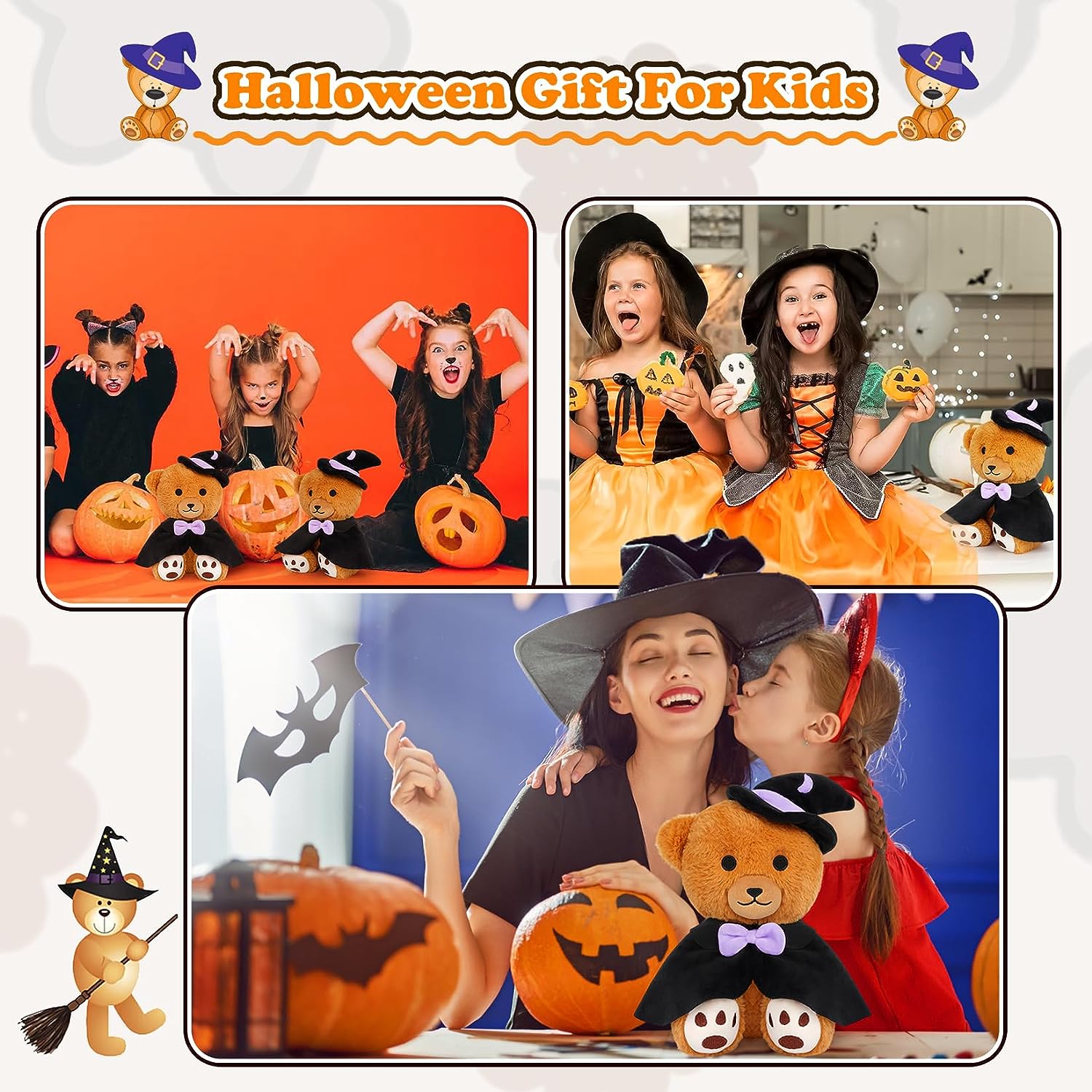 - Regalo de Halloween: este adorable juguete de peluche de bruja tiene un sombrero largo de bruja con una luna morada, una capa y un pajarita púrpura, se ve muy lindo y lleno de ambiente de Halloween. No hay nadie que no ame una linda y suave muñeca de peluche de osito de peluche. Este suave y tierno juguete de peluche de oso de peluche es el regalo perfecto de Halloween para niños y familiares.