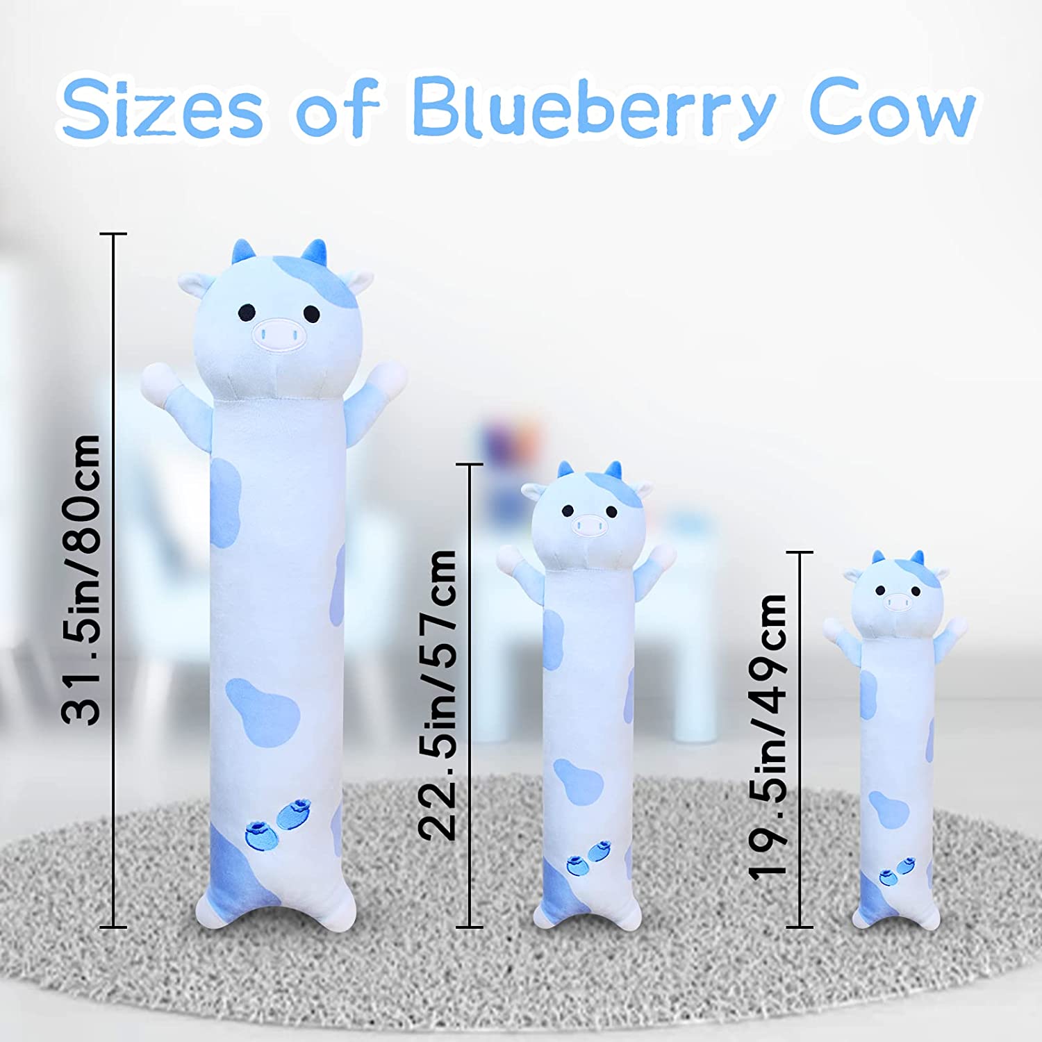 Long Blueberry Cow Plush Body Pillow, 19.5" Kawaii Blueberry Cow Stuffed Animals Cow Plushie, Blue Long Cow Pillow Soft Plush Cow Long Throw Pillow Toy for Kids Girls Boys Valentines Day Gifts