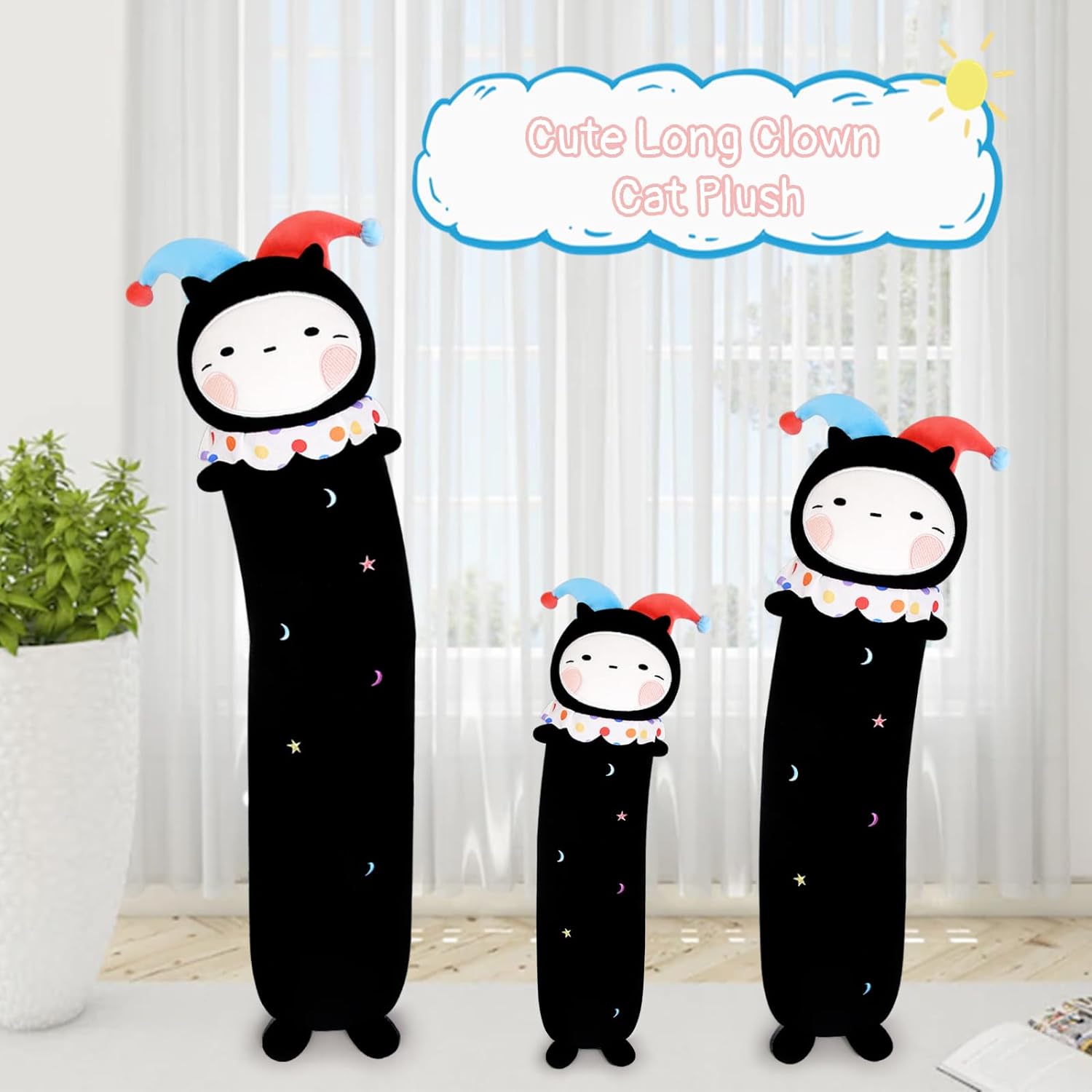 Long Cat Plush Body Pillow, Cute Halloween Clown Plush Long Cat Throw Pillow, Kawaii Stuffed Animal Clown Cat Plush Toys for Kids, Boys, Girls (Black, 90cm/35in)