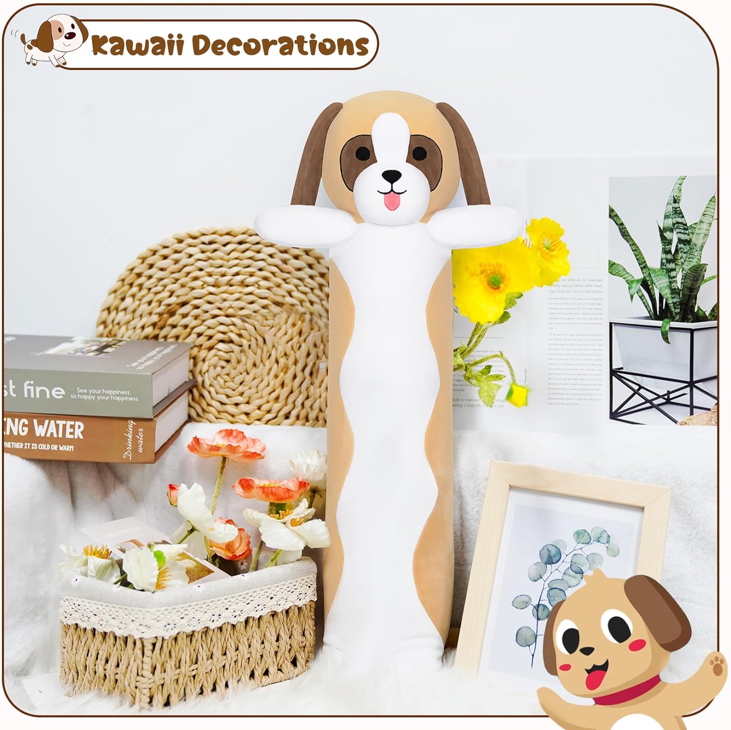 Long Dog Pillow, Long Dog Stuffed Animal Body Pillow, 22” Soft St Bernard Dog Plush Sleeping Throw Pillow, Cute Cartoon Stuffed Dog Toys, Kawaii Dog Plush Pillow Gifts for Kids Girlfriends