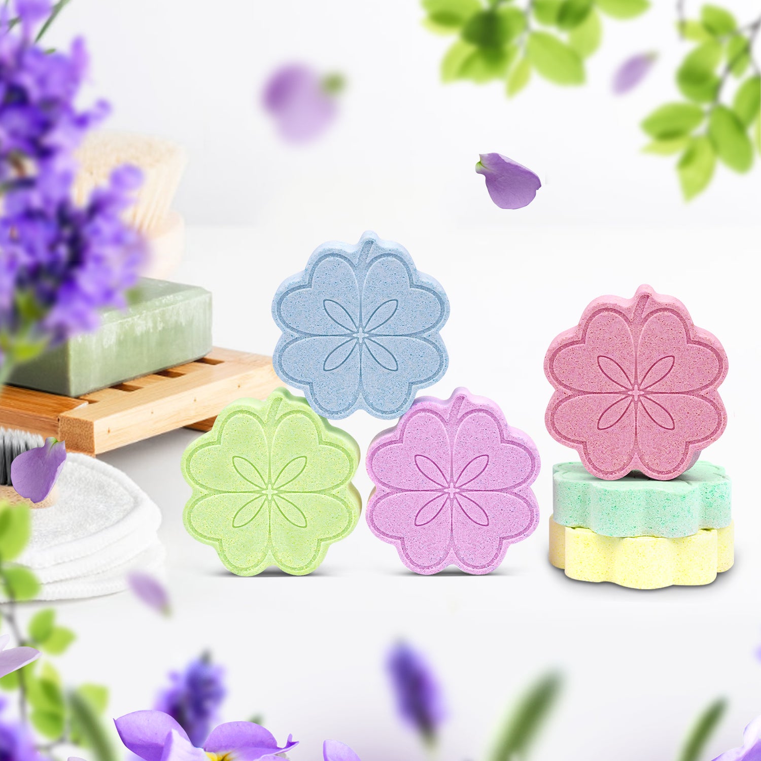 - Multiple Enchanting Scents: this 6-piece Clover Aromatherapy Shower Steamer comes in Lavender, Lemon & Mint, Eucalyptus, Olive & Lemon, Grapefruit, and Bamboo scents. Each scent is unique, so you can choose the spa shower steamers you want to enjoy today according to your preference and mood. Each shower brings a rich scent experience.
