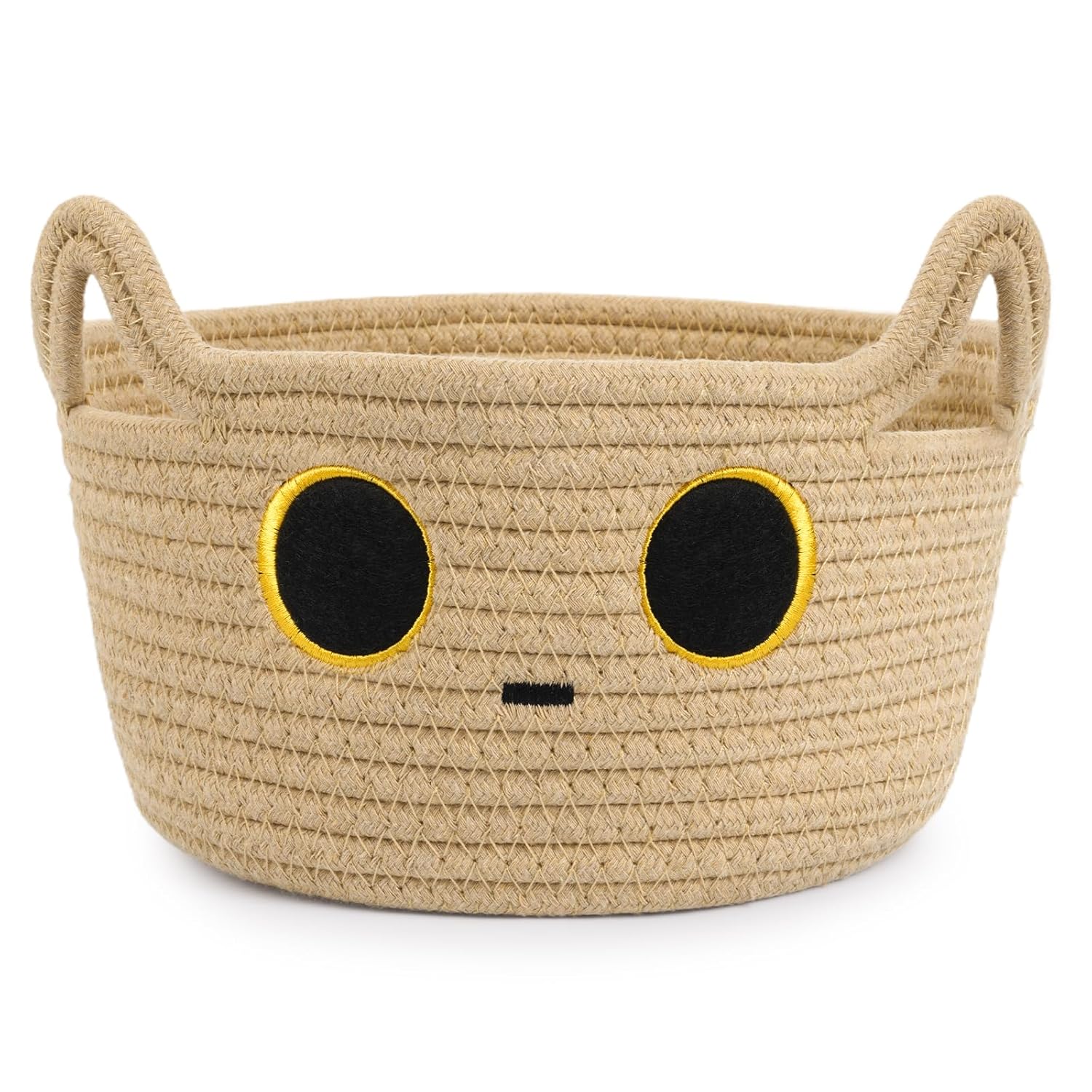 Small Storage Basket, Cute Blanket Basket for Nursery, Cat Basket Cotton Rope Woven Baskets for Kids Toys,Towels Organizating, Basket for Gift Kids Adult, Cat Dog Toys Bin