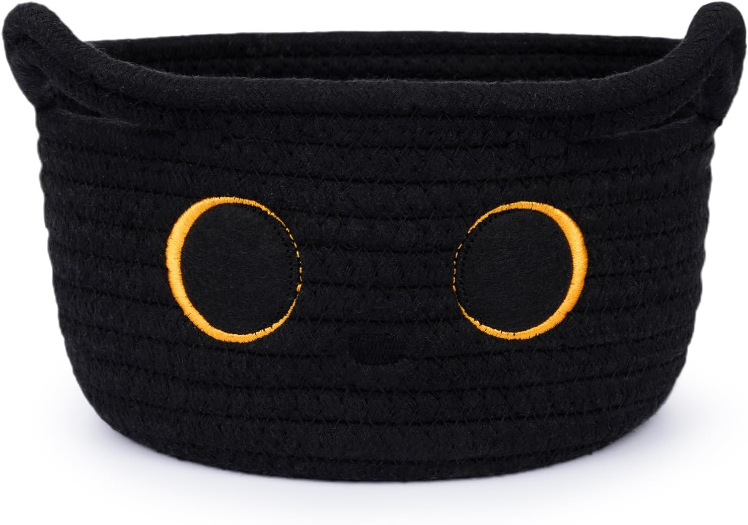 - Cute Cotton Rope Basket Design: We've added a black cat to the original cotton thread woven in a single colourway,cat pattern use embroidery technique. This makes it practical and fun to decorate your space. The materials used are also non-allergenic so that you and your family can use it with peace of mind. The ears can with handles for easy carrying. Good small black cat storage basket