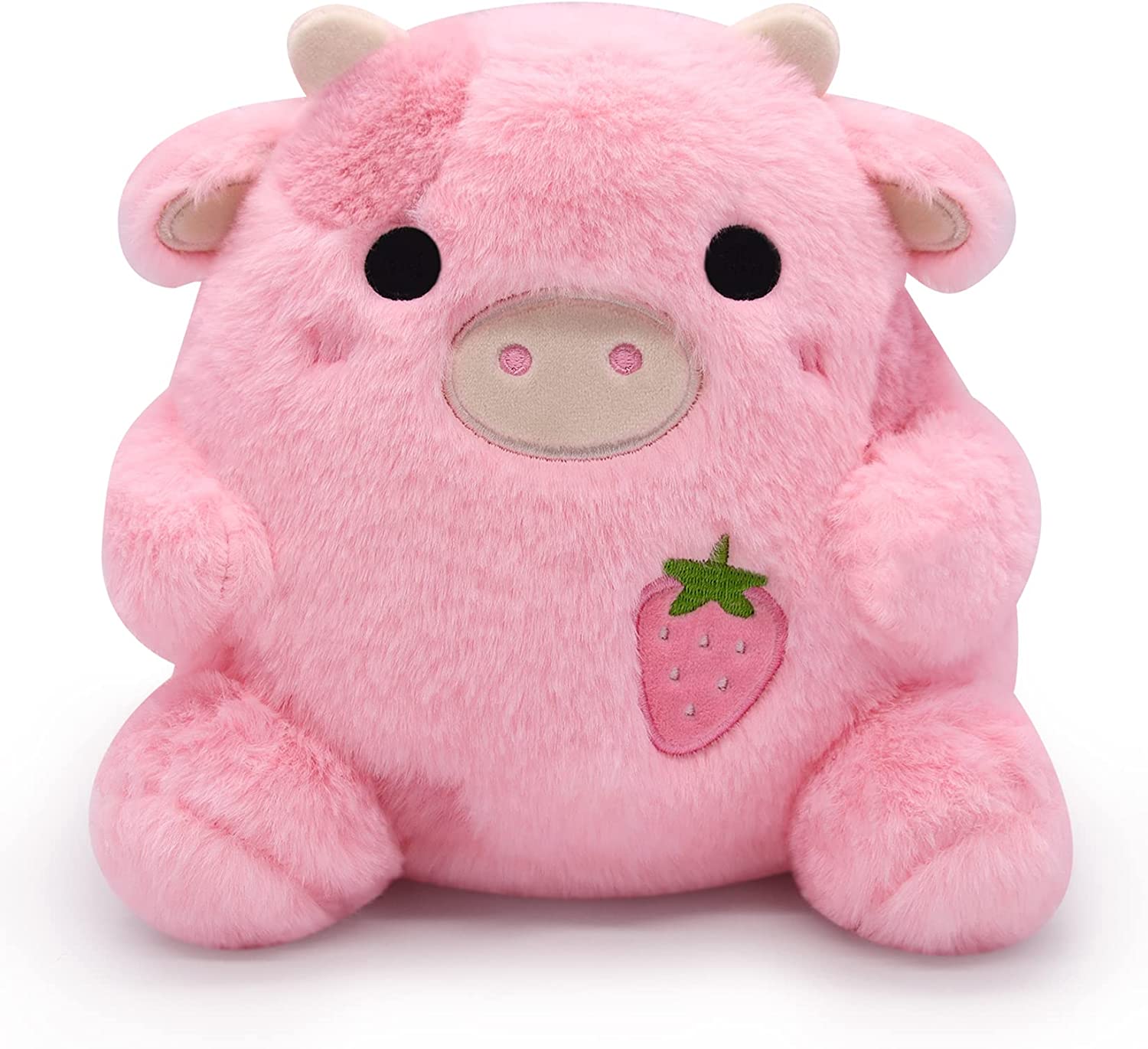 【Cute Cow Plush Design】 This Strawberry Cow plush toy is carefully designed.It has a pair of lovely horns and ears, a strawberry embroidered on its body, and it is sitting as if waiting for you to hug it, very cute and irresistible.