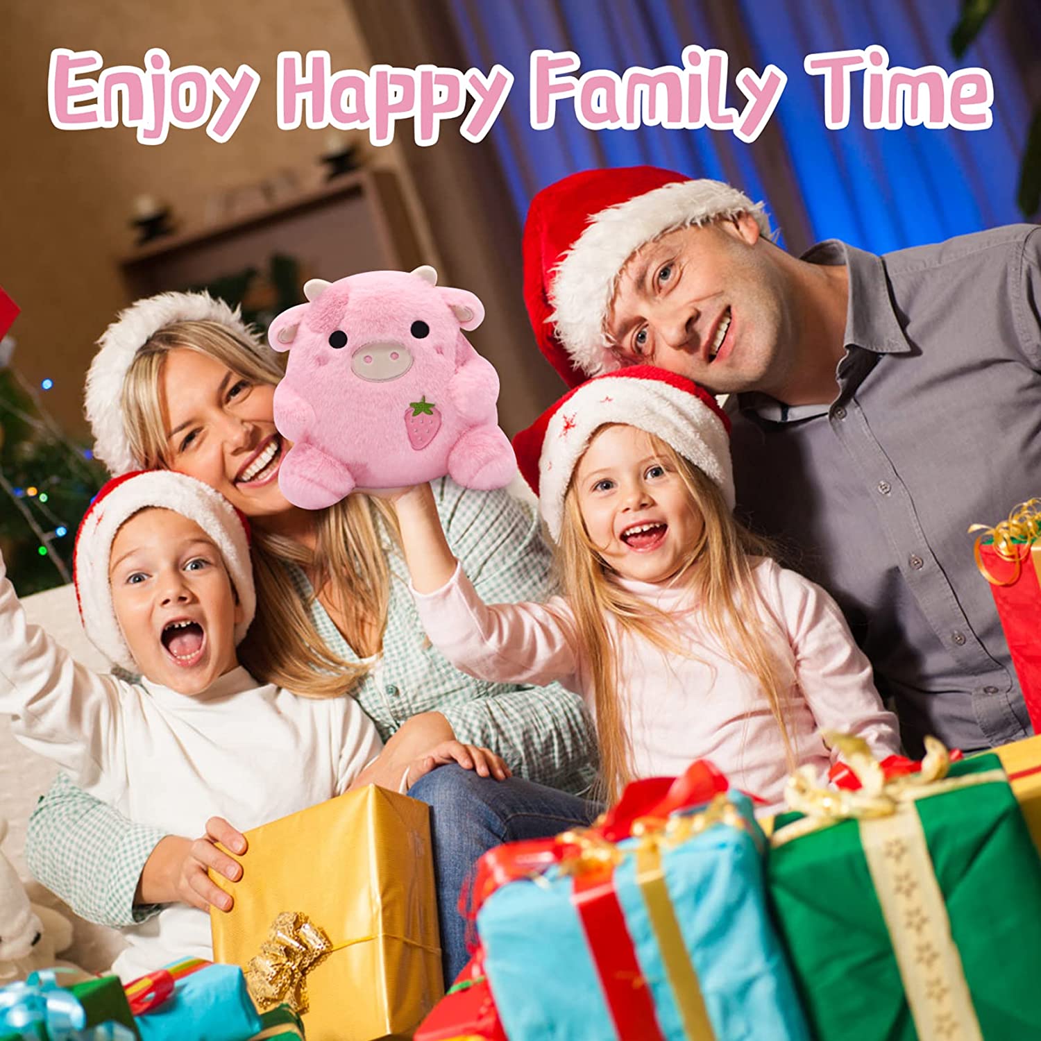 【Suitable】 This Strawberry Cow plush uses are extensive. It can be used as a toy growing up with your child and can also be used as an ornament on your couch. Since it is very soft, it can act as your pillow when you feel tired. Suitable for bedroom, living room, family, office.