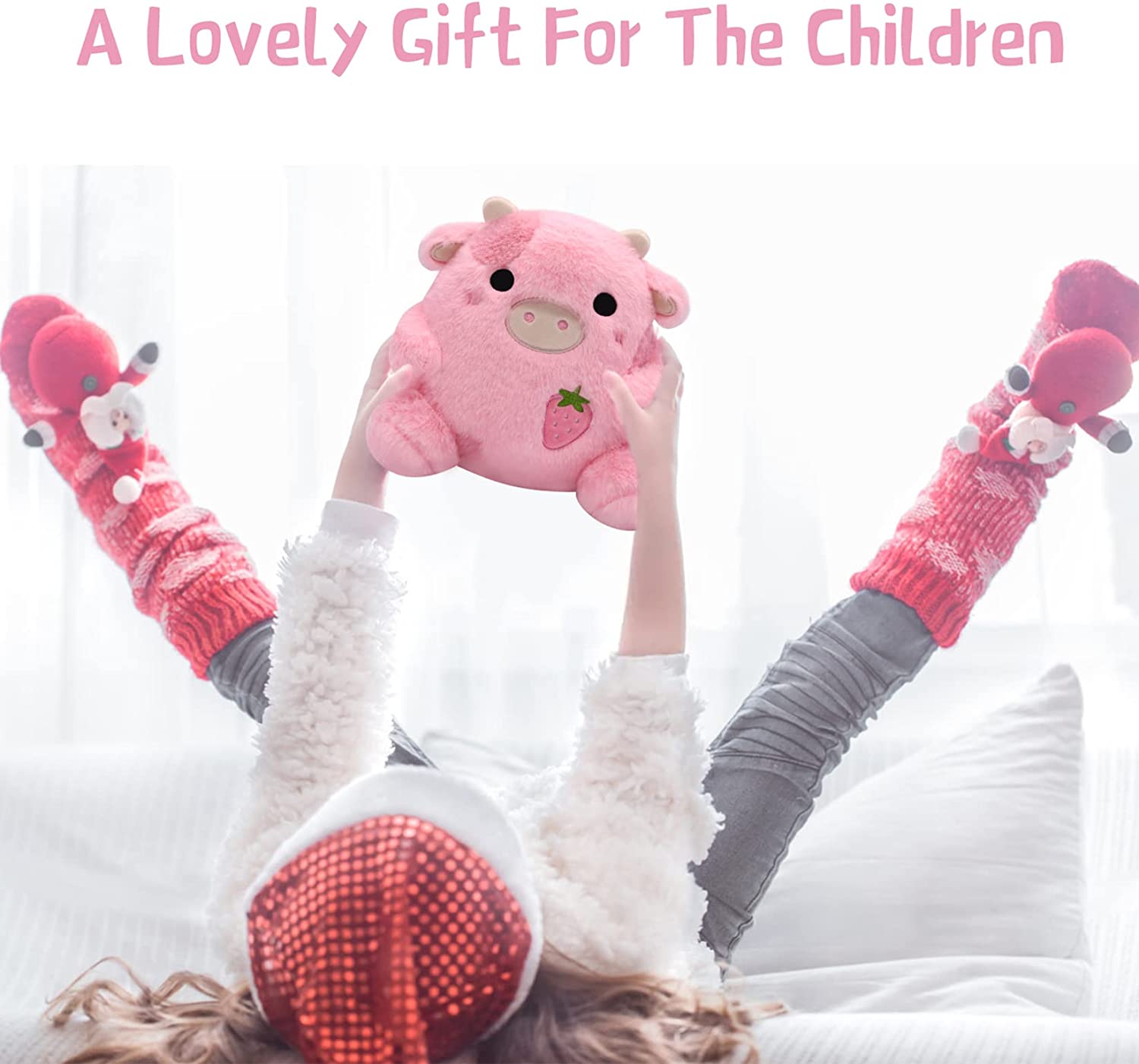 【High-Quality Material】 Our Pink Cow plush toys are made from the high quality materials, and the softness, weight and quality are something you can feel the first time you touch them. It is made of polyester fiber. it is suitable for all ages. Every piece of cloth is tightly stitched.