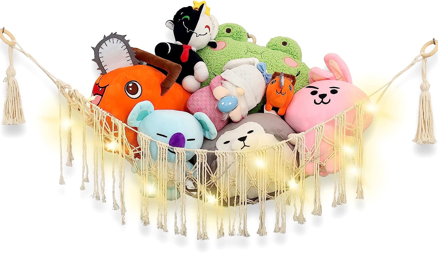 Stuffed Animal Hammock,Stuffed Animal Net For Storing Plush Toys,Corner toy hammock ,1 Piece Of Stuffed Animal Net + 2 Pieces Of Luminous Star Chandelier+6 Piece Hook Up