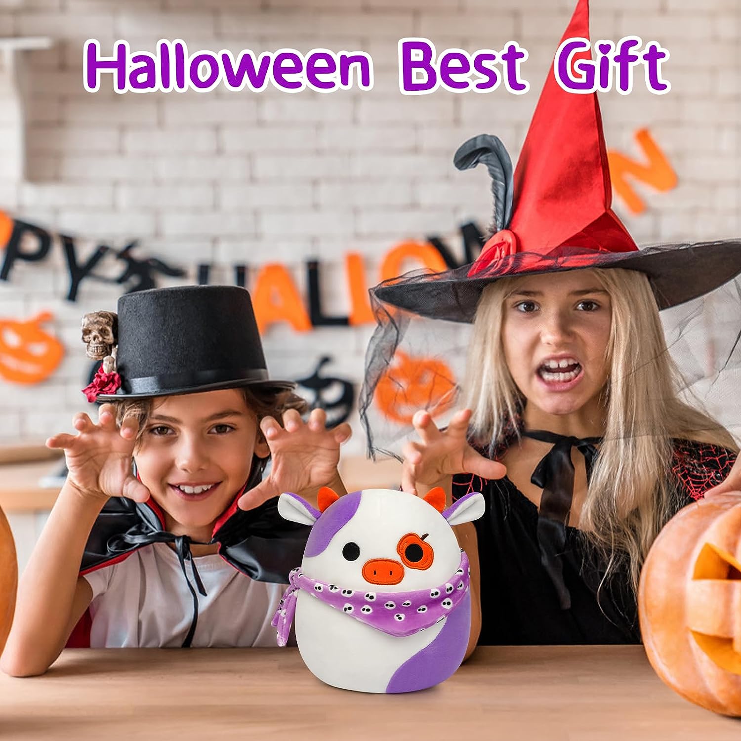 - 🎃Cute Cow Plushie:The super cute plush cow doll makes a sweet gift.Full of Halloween elements, it can be used as a Halloween gift for your children,friends,relatives,let it accompany your loved ones to spend a happy Halloween