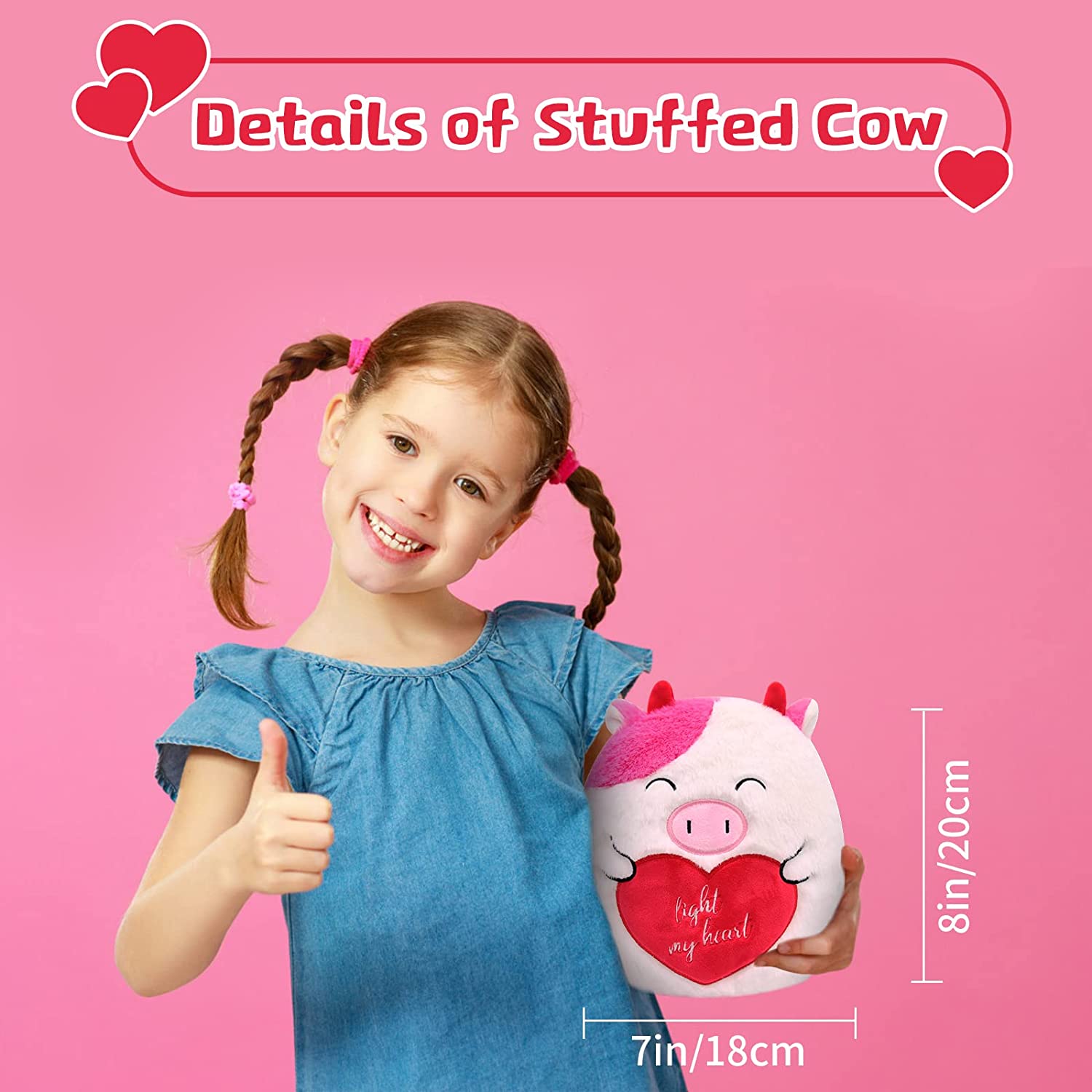 💖【Cute Cow Plush Can Express Love】:This plush cow toy is very cute and lively with a smile. The delicate heart embroidery makes the plush cow full of romance and love and can express your love for others, it is not only a plush doll, it is a symbol of love.