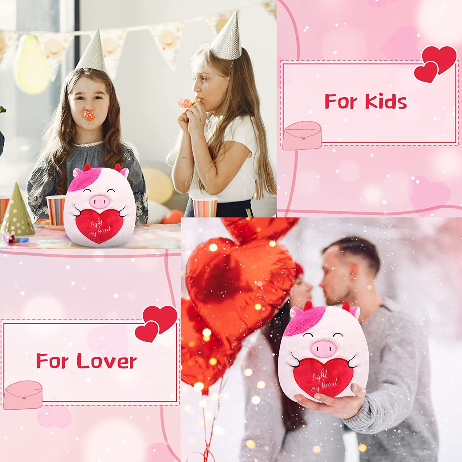 💖【Multipurpose Cow Stuffed Animals】: Sweet love cow gift for Valentine's Day, Christmas, Thanksgiving and birthdays, perfect for your wife, girlfriend, granddaughter, grandson, friends gifts and themed party decoration. It can also be placed on sofas, beds, collection cabinets, cars, etc. as decorations. Adorable cow animal throw pillows will add a lively vibe to your home.