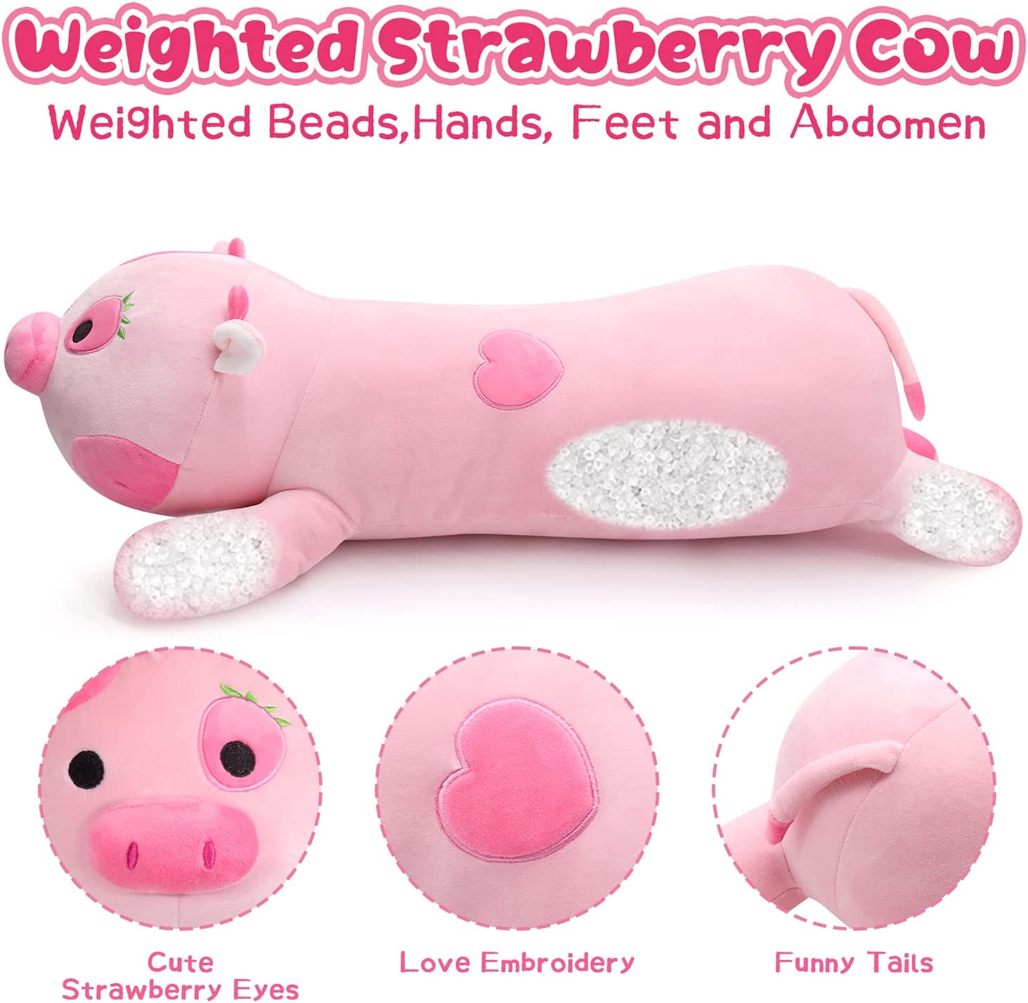 - 【Emotional Support】 No matter what you suffer, weighted strawberry cow stuffed animal will fully support you in any emotion. It will stay by your side all the time while you sleep, read, and work.