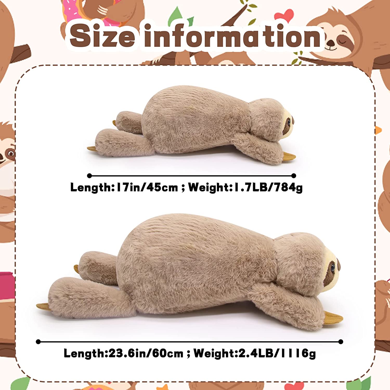 - Perfect Gift: Cute sloth plush is best choice for your children, friends family or loved ones on Halloween, Thanksgiving, Christmas, Birthday and any other day worth celebrating.