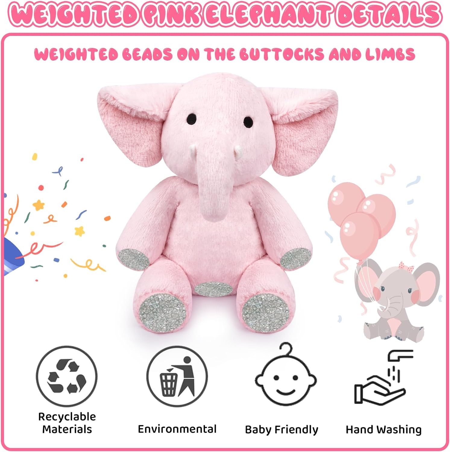 Weighted Stuffed Animals, 13in | 1.3lbs Weighted Pink Elephant Plush Toy, Kawaii Weighted Plush Elephant Stuffed Animals, Soft Stuffed Elephant Throw Pillow Gift for Kids & Adults